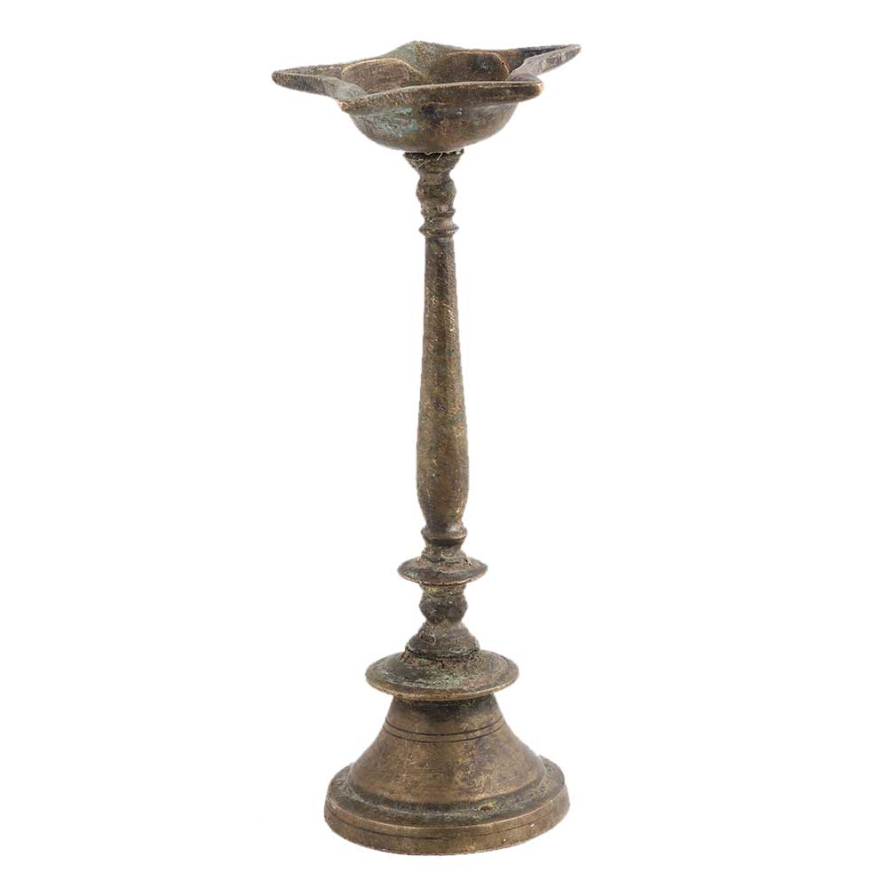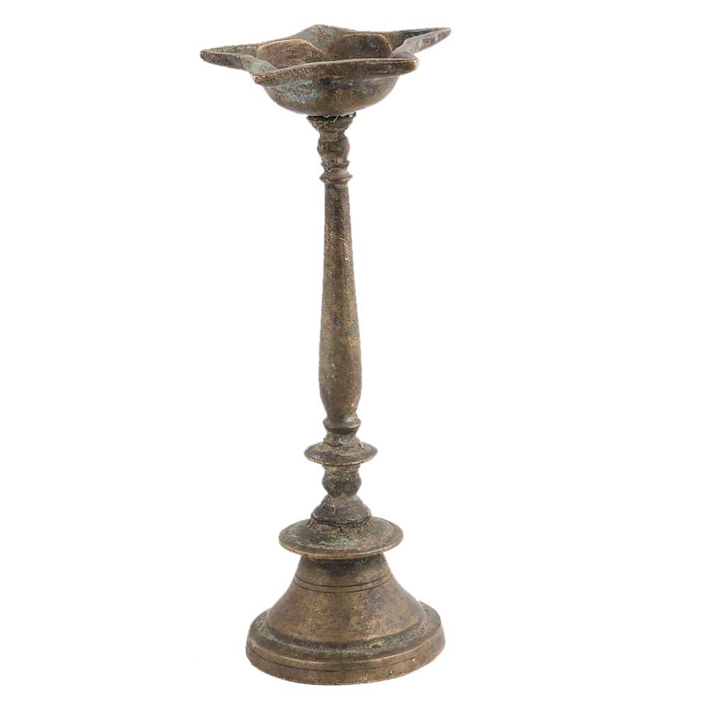 Imagine the joy and ecstasy of buying this small vintage used Kuthu Vilakku oil lampstand with 5 jyoti for pooja room decor. You can light this stunning small vintage used oil lampstand with 5 Jyoti with camphor or desi ghee. It helps to provide a soft glow and relaxing aura that makes you forget all your woes. Altogether, the effect of divine ambience can be felt using this product. Light this up every day and purify your surroundings by removing negative effects altogether.