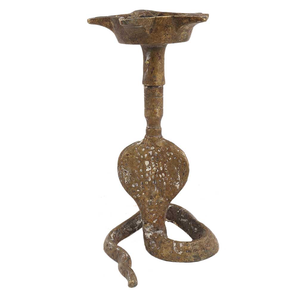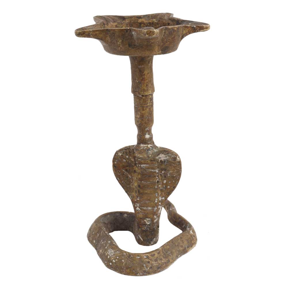 Spiritual Light for your interiors this brass snake head oil lamp is made by the local craftsmen of India during religious ceremonies and occasions. the Symbols and the Figures Sculptured on This Lamp. It Adds Spiritual Flavor to Your Decor.