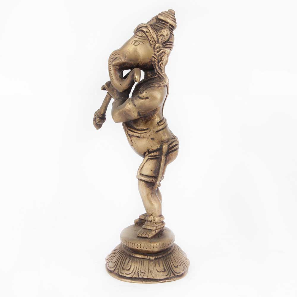 Ganesh is Exultantly Dancing While Playing the Flute in a Carefree and Joyous Pose with His Trunk Raised. He is the "Remover of Obstacles" and Inolked Before Any New Beginning or New Venture to Help Clear the Path for Success.