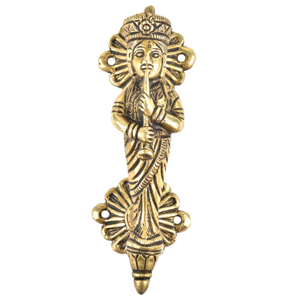 Add a touch of divine elegance and cultural beauty to your home with the Brass Standing Goddess Playing A Musical Instrument Door Handle. Inspired by traditional artwork, this door handle features a beautifully detailed depiction of a goddess gracefully playing a musical instrument. Crafted from high-quality brass, this handle brings a sense of spiritual artistry and luxury to any door, whether it's your entrance, bedroom, or living room. A fusion of tradition and beauty, it elevates the aesthetic of your space while offering reliable functionality.