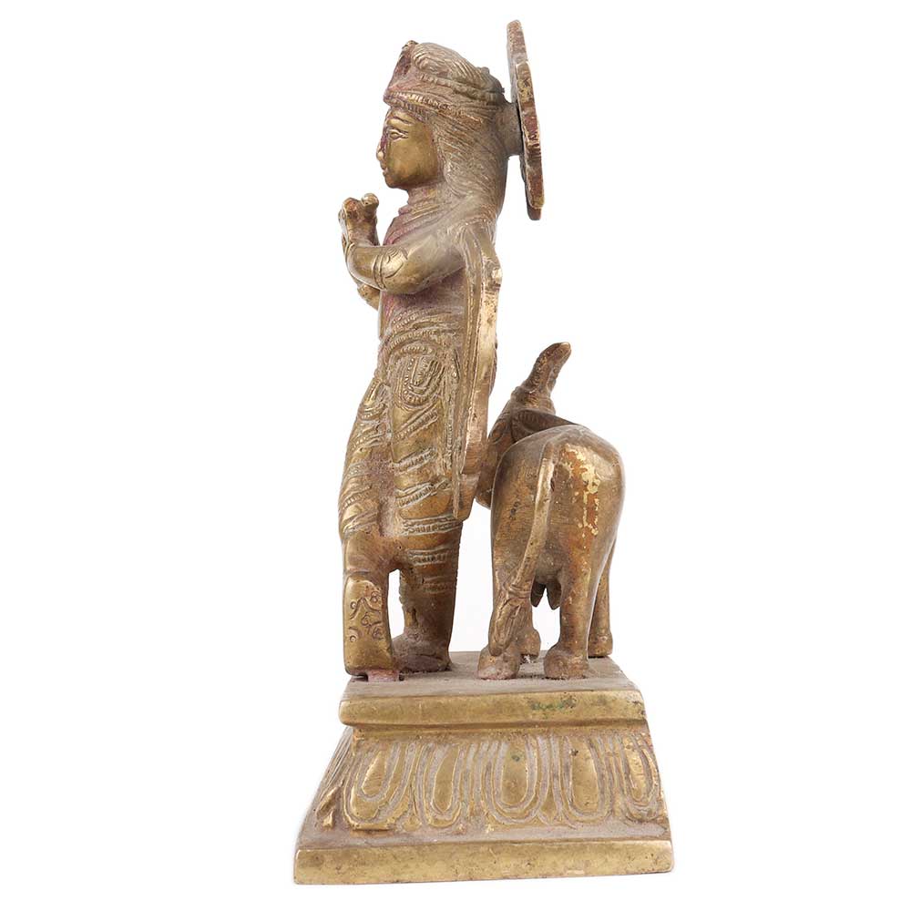 lovely and detailed brass standing Krishna statue with his cow and flute. Lord Krishna is the most admired and worshipped lord . He stands on a lotus base and is made by the expert artisans of india .Use it as a showpiece in the interiors of your house, as a diwali gift, wedding gift , birthday gift or house warming gift.