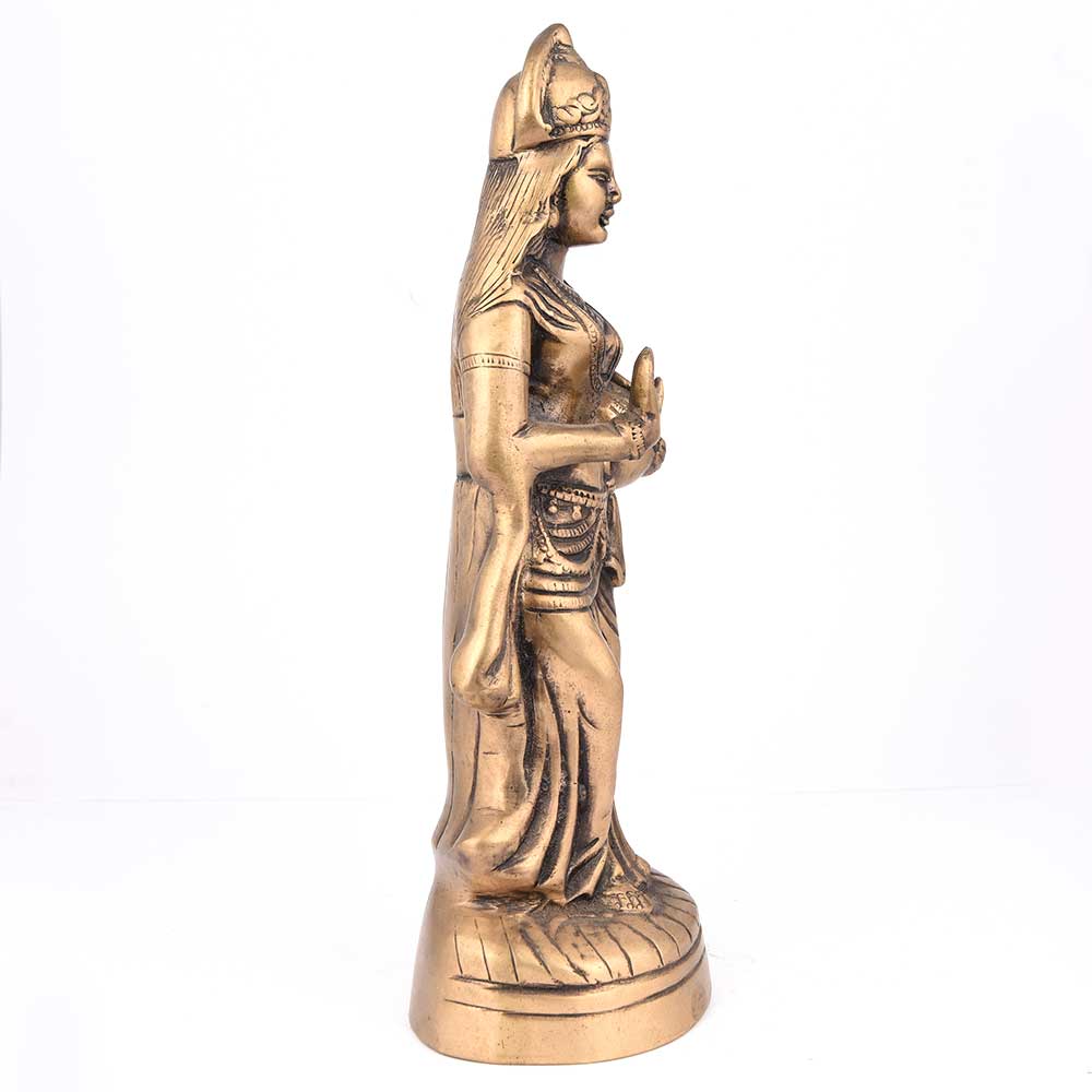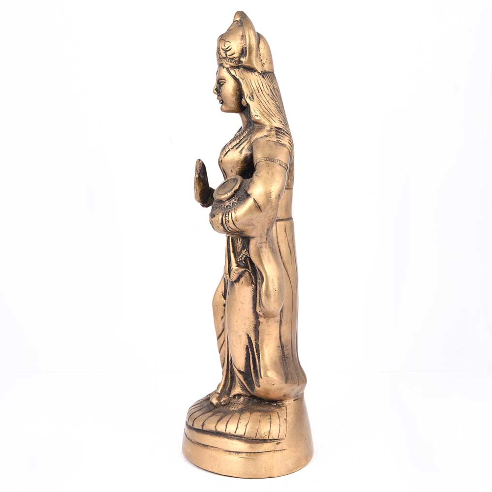 Brass Indian Figure Made of Quality Brass, It is Beautifully Molded and Crafted with Modern Sculpture Art That Depicts a Traditional Indian Lady Standing Pots(Matkis) on Her Waist.