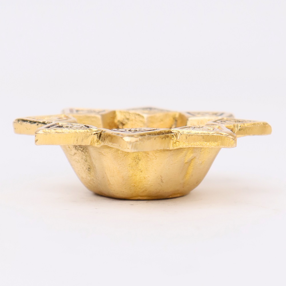 Bring divine radiance to your festive celebrations with this Brass Starry Flower Oil Lamp, designed for Diwali decoration, puja rituals, and auspicious gifting. Inspired by a starry floral pattern, the diya reflects both celestial energy and sacred purity. Handcrafted in solid brass with a glowing golden polish, it adds timeless beauty to temples, homes, and festive occasions.