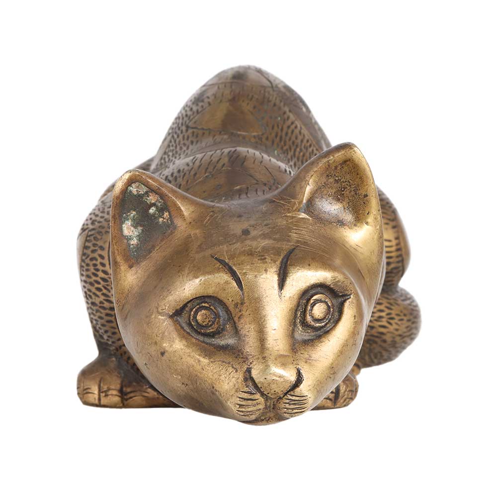 A brass statue of a cat in an attacking position. Buy a handmade cat statue online, handcrafted by highly skilled and experienced artisans using ancient methods. This statue depicts a cat with stiffened rear legs, with the rear end raised and the back sloping down towards the head and tail is stiff and lowered to the ground. This statue is handcrafted by skilled Indian artisans and will leave a long lasting impression in your home decor. Decorate your home with a statue crafted from high quality brass that will add an alluring look to the interiors of your home or office. A perfect item to gift on special, festive or auspicious occasions to your family, friends or relatives.