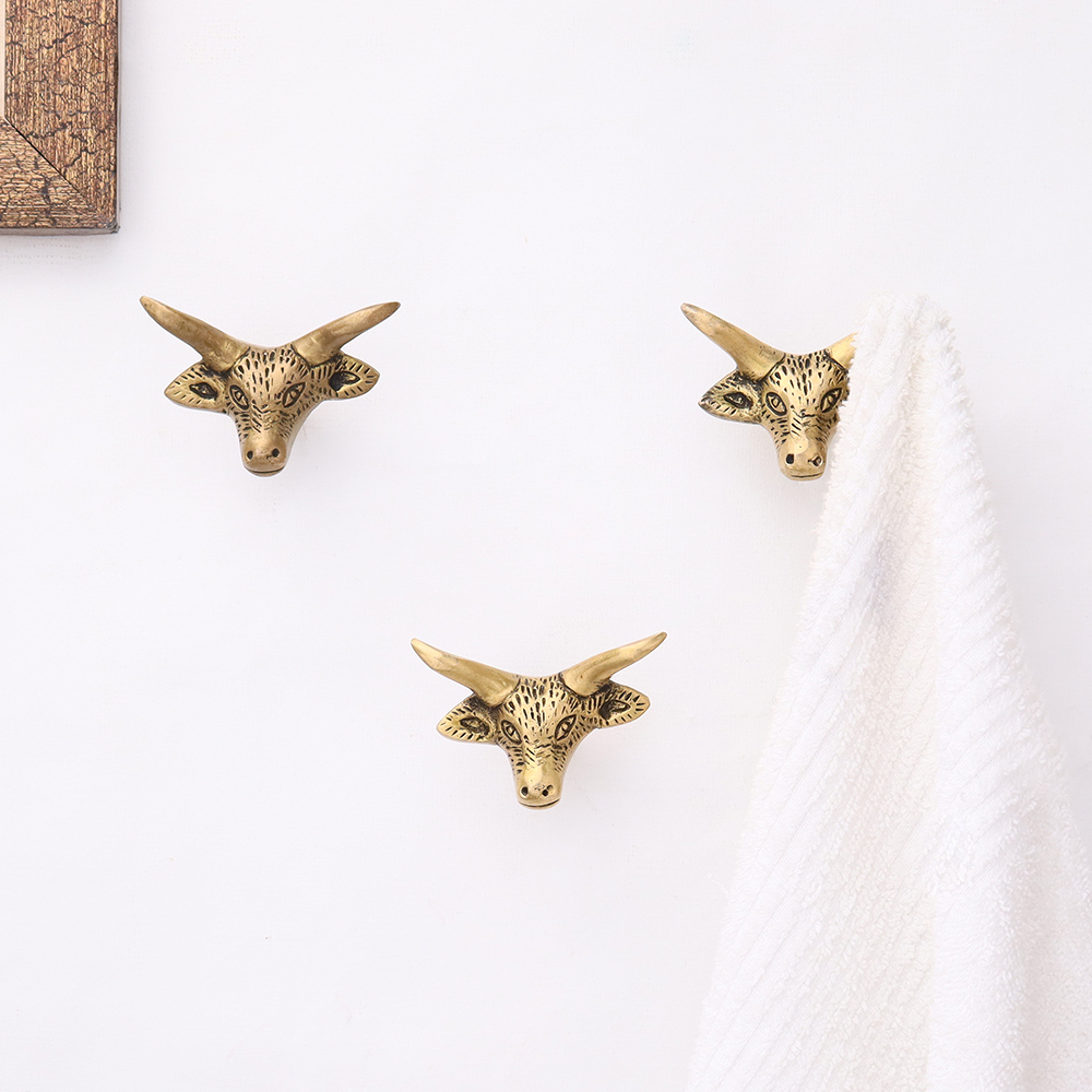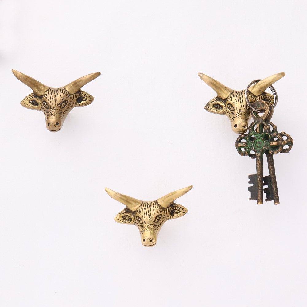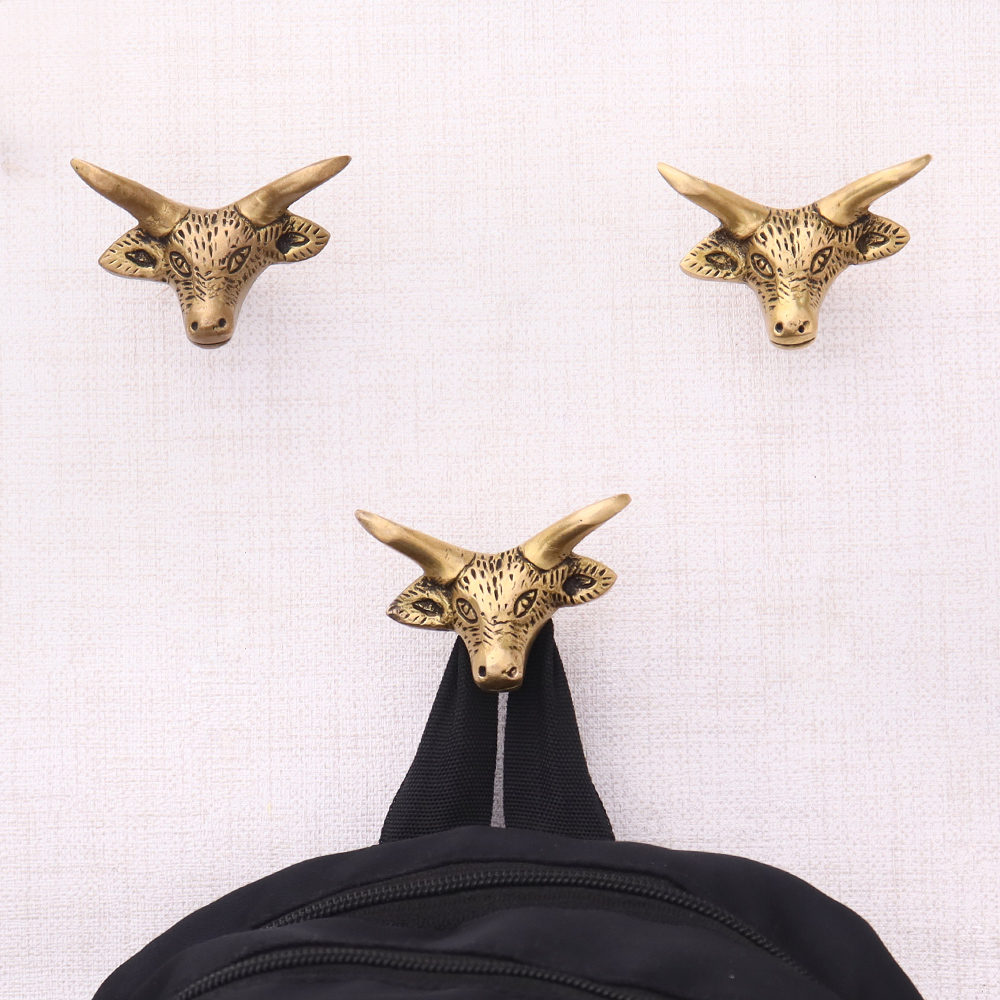 Brass Steer Head With Horns Wall Mounted Coat Hooks. This Hook is Strong Enough to Hold Your Cloths, Keys, Tea Cups, Coffee Mugs, Hand Towels Etc.