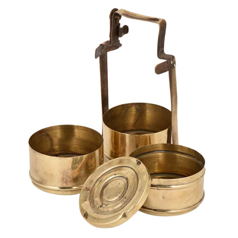 This is traditional dabba or brass Tiffin box made by the expert artisans of India with three storage boxes and lid for the top most container. All the three containers are held together with the help of a thick brass frame that has a traditional locking system. gift it to your near and dear ones on Diwali, Christamas, New Year or as a corporate gift.
