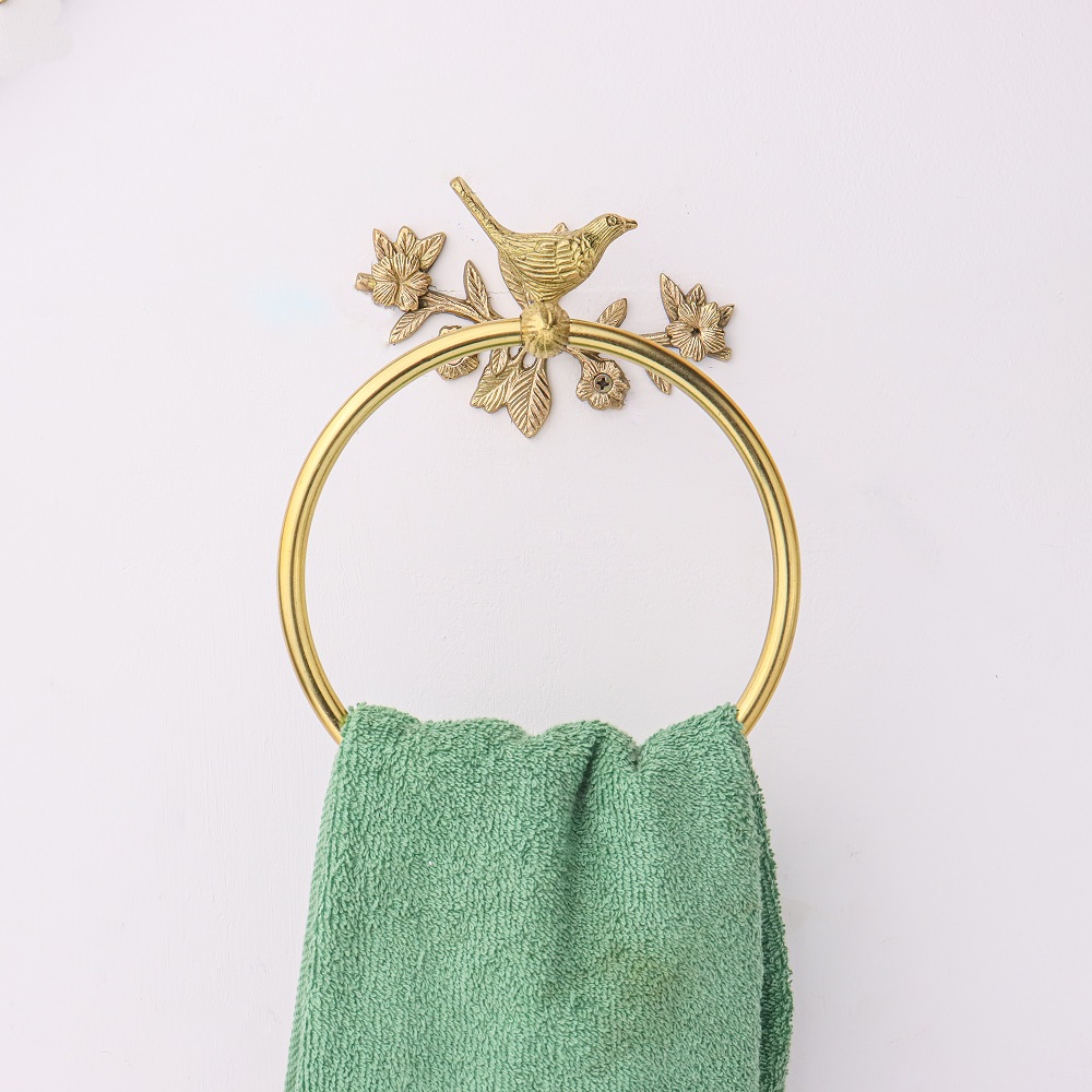 Add a hint of sophistication to your bathroom or kitchen with this brass towel hanger. Its sleek, metallic finish and delicate bird design create a luxurious, welcoming atmosphere, making it perfect for both traditional and modern interiors.