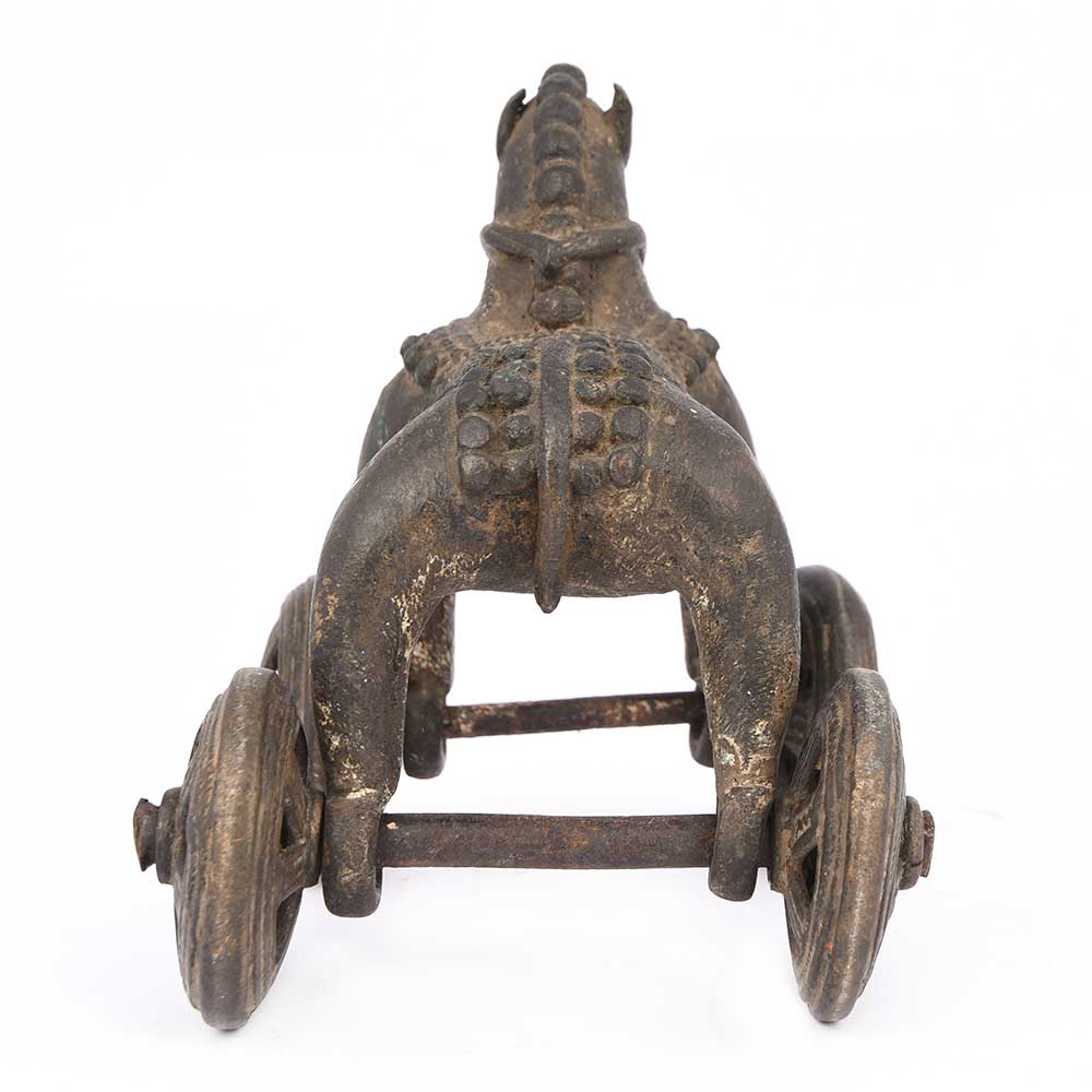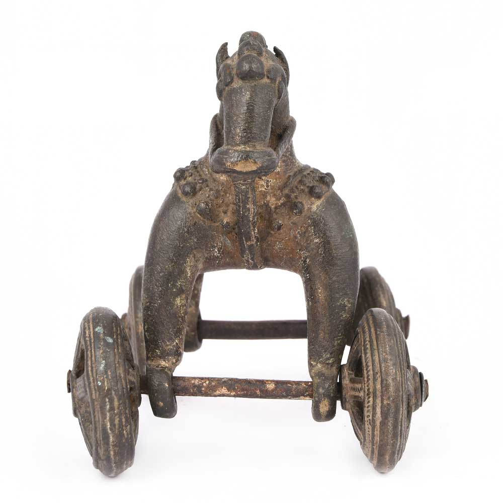 Wonderful Handcrafted Statue of a Horse Toy on Wheels , Made with Great Detail, Very Heavy Metal, in Very Solid Bronze with a Vintage Look.