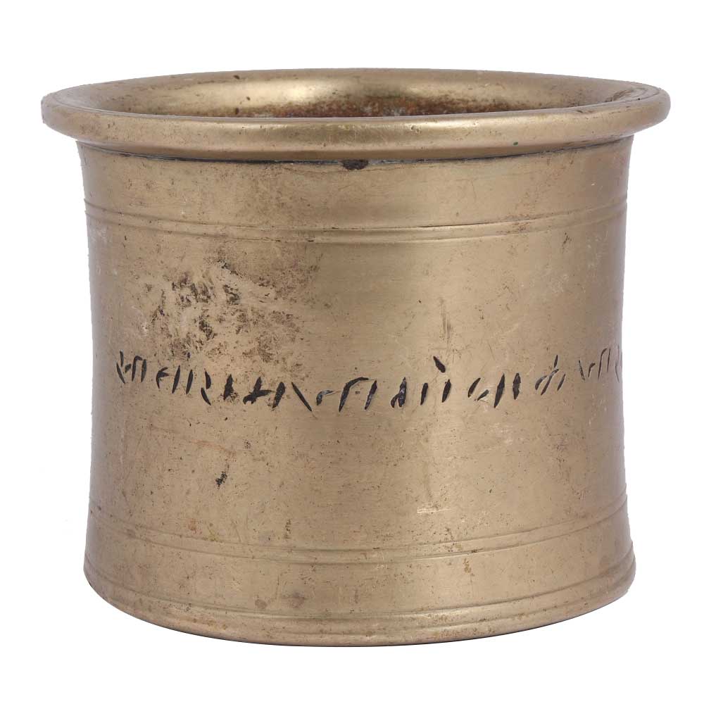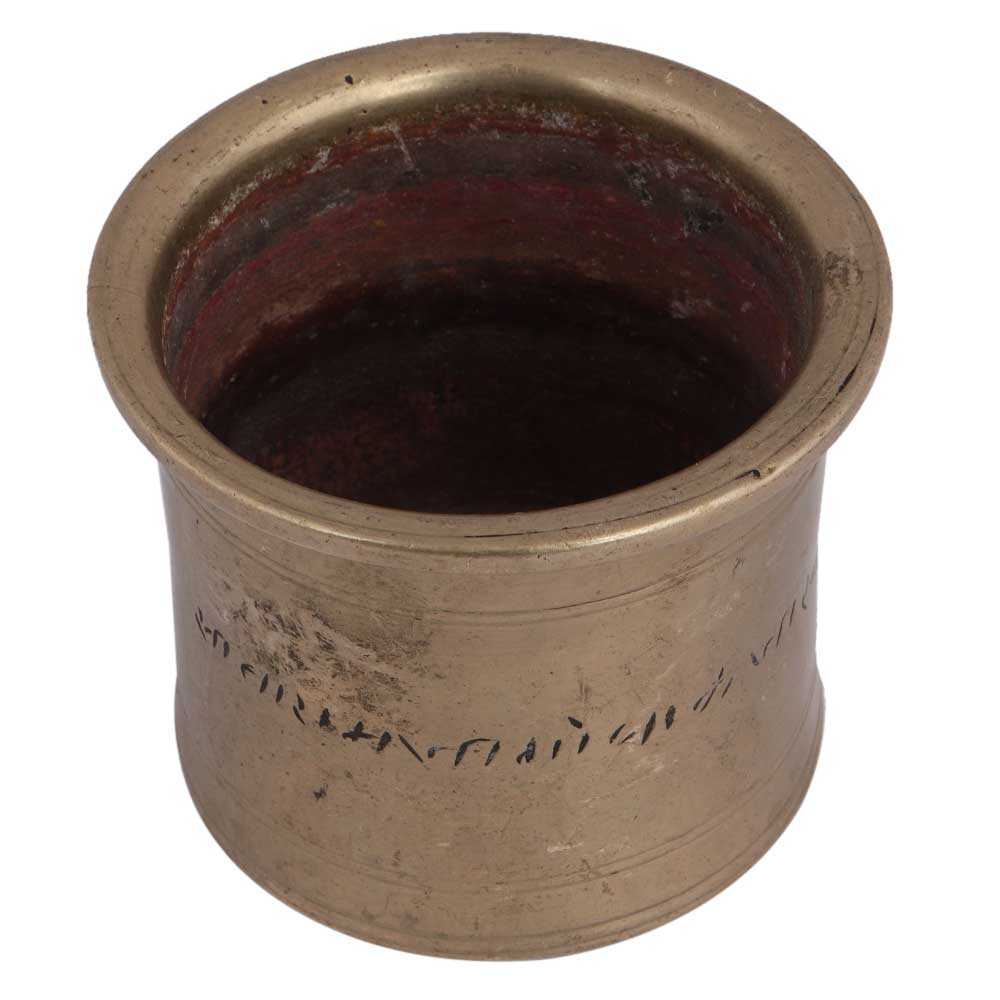 Brass handmade traditional Puja Panchapathiram cup with the name of owner engaved on it. It is used for charnamrita distribution and gifting. Ideal for Puja, Prayer, Auspicious Occasions & Festivals.