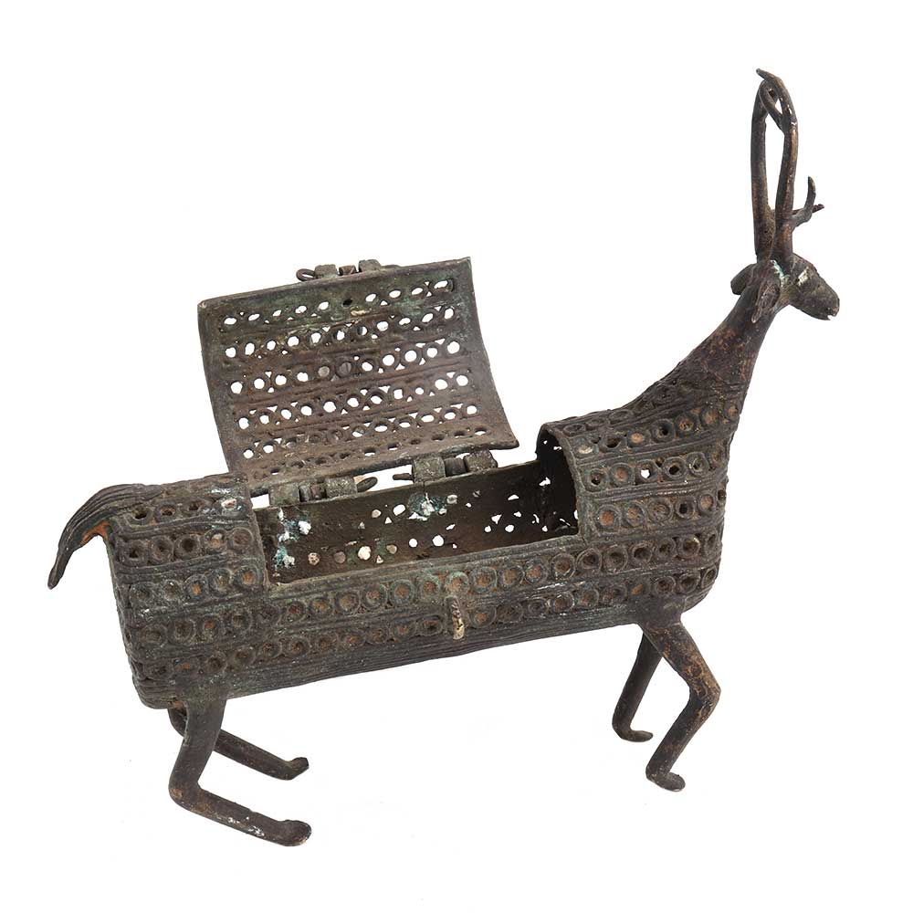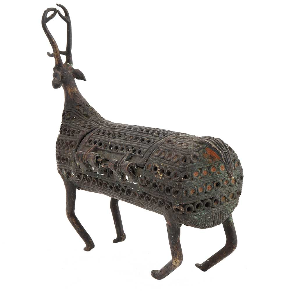 Brass Tribal Deer With Jail Design And Tiny Box is hand engraved by the tribal artisans of India. This hand engraved deer figurine can be placed in the living room to enhance the beauty of the room or can be gifted to your near and dear ones on auspicious functions and ceremonies.