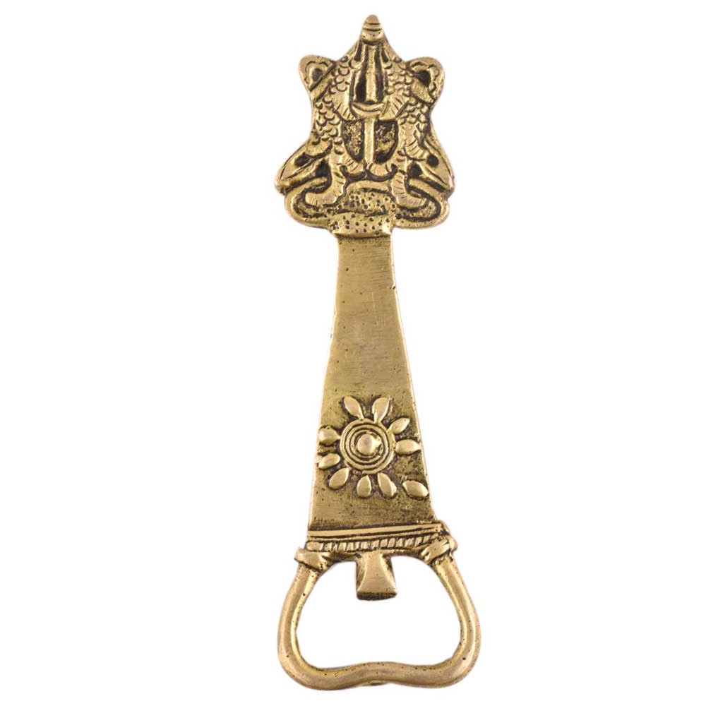 Made of solid brass functional and decorative piece unique piece this vintage design bottle opener with a golden brass finish is perfect for the kitchen or any bar area. Locate one in your home or outside for parties.
