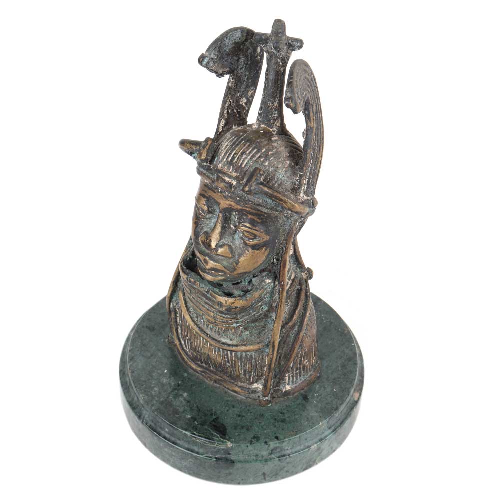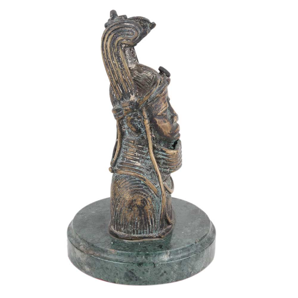 Brass Tribal style women face bust with unusual looking crown wired design on a green round base can be used as showpiece in home as well as in office. Gift it to your near and dear ones on special occasions and functions.
