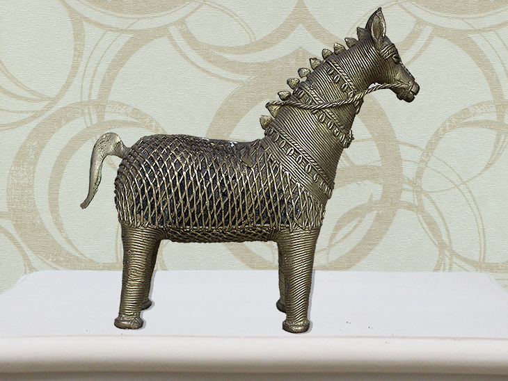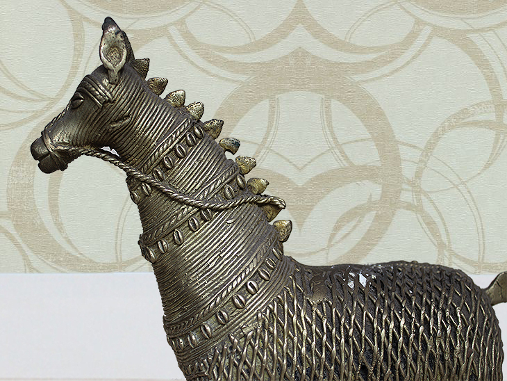 . Brass Tribal Horse. Beautiful Posture. Made All by Hand. Finely Done Sculpture by Highly Skilled Artists.