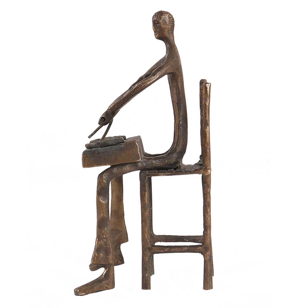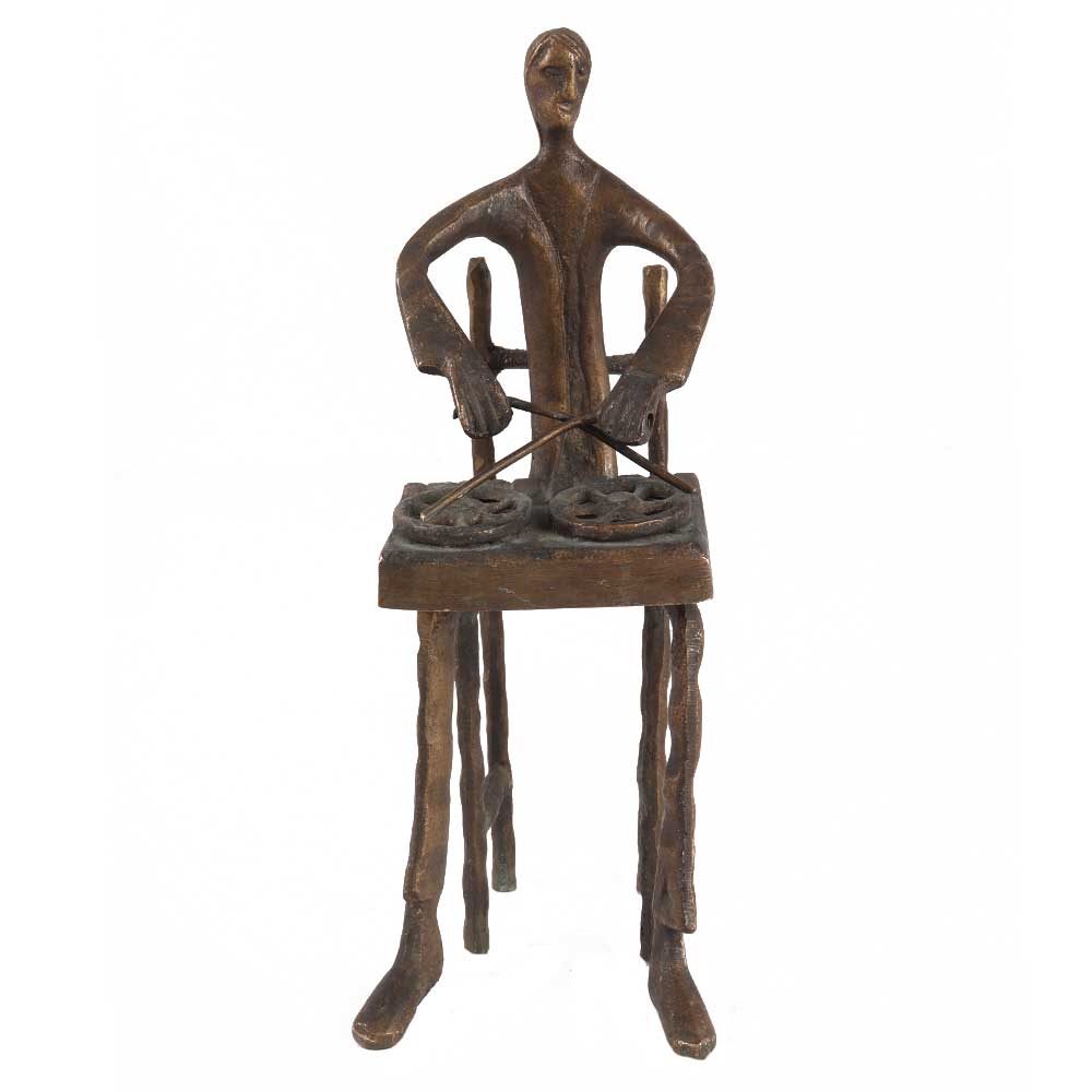 Tribal man playing drum statue in pure brass is a significant part of Indian culture and legacy. It is created using old tribal techniques. Select a pair to complement your desk or patio. The stunning man musician statue embodies the great attention to detail displayed by tribal artisans and native craftsmen. It comes in black finish.