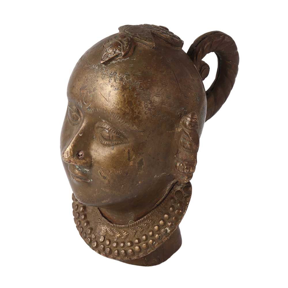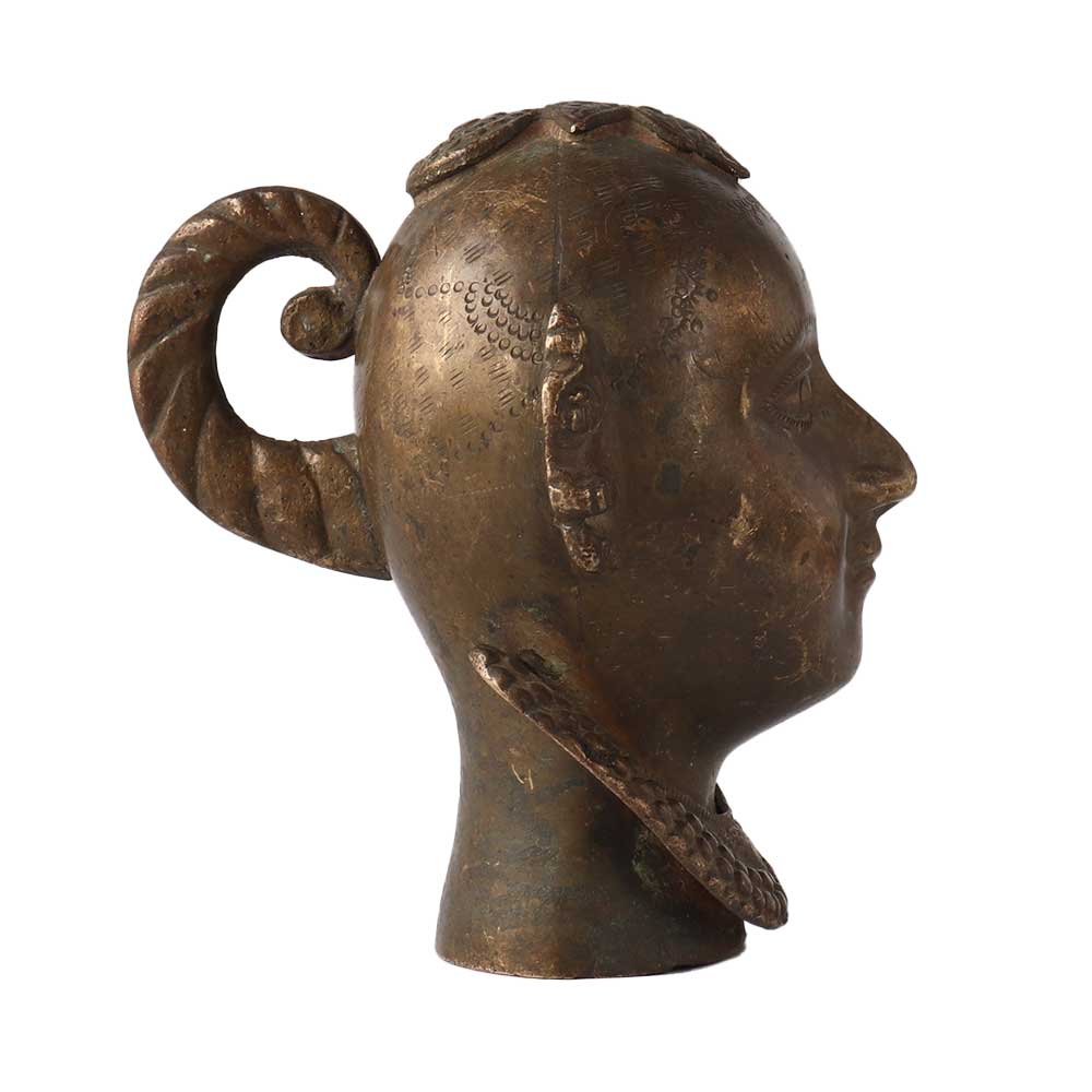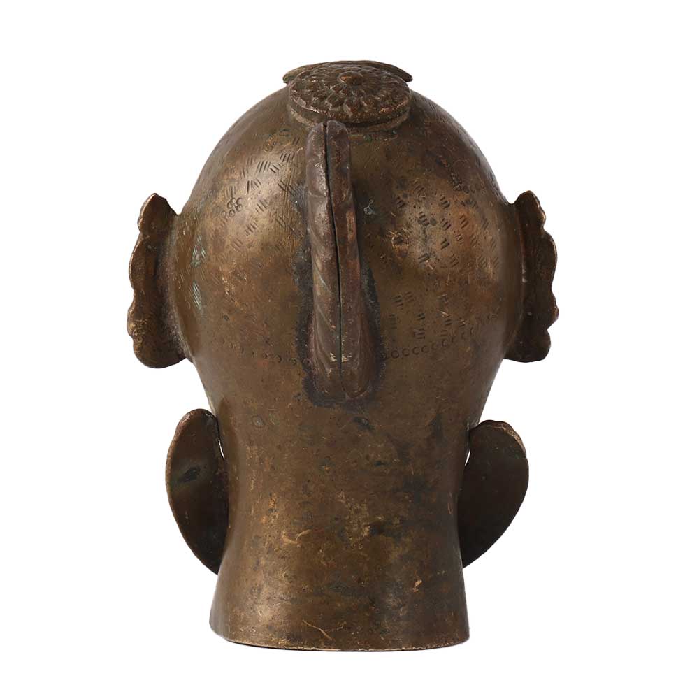 India's skilled artisans created this gorgeous antique, a complex, large brass Gauri head. The Gauri's hair and jewellery both have lovely touches. The item is in excellent condition and would add a great traditional charm to your decor. Gauri is viewed as the consort of Lord Shiva, Goddess Parvati. She stands for fertility, love, and sacrifice. Despite the fact that Gauri usually wears jewellery, her face conveys incredible grace and charm. Gauri is a popular deity in the Indian states of Maharashtra and Karnataka.