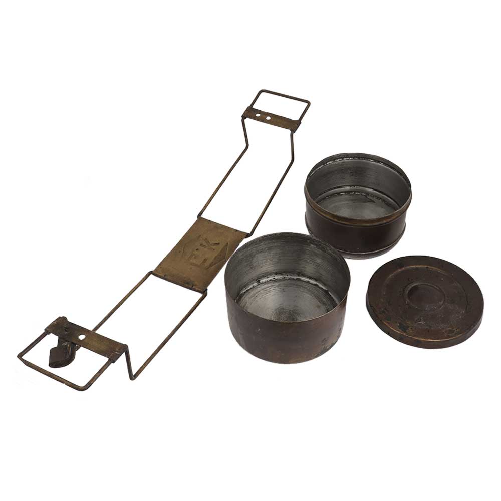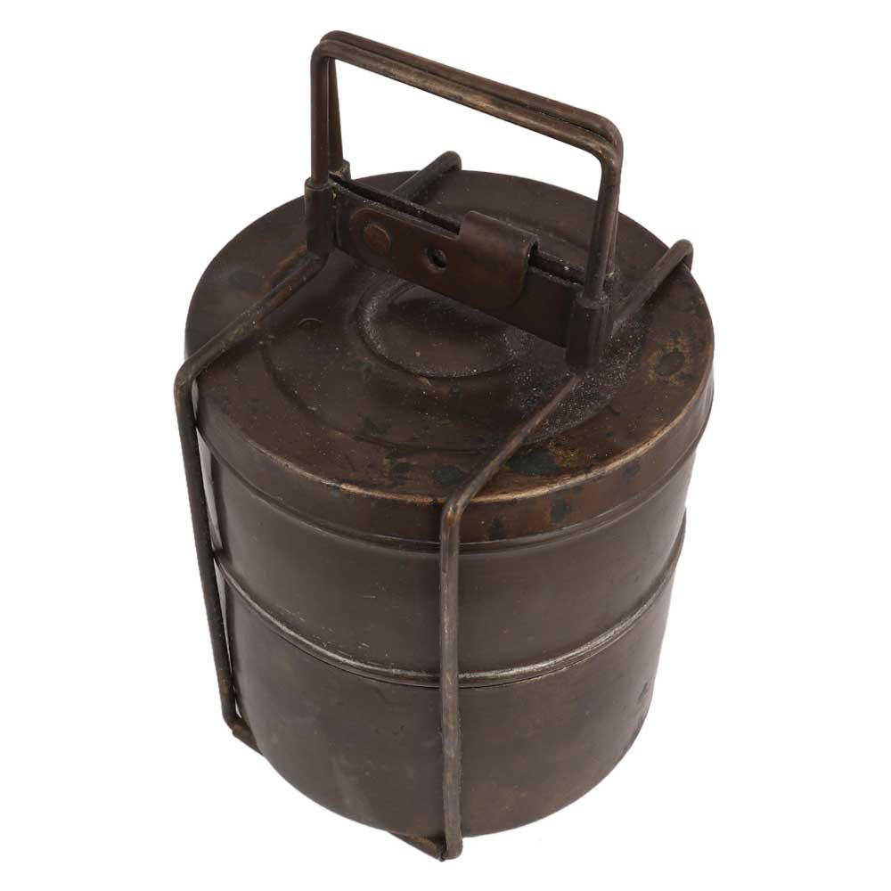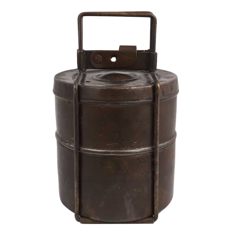 Brass Two Tier Lunch Box With Old Age Patina .It has a handle that binds the two container. Wedding gift, House warming party gift or a simple kitchen decoration product. A great collectors item.