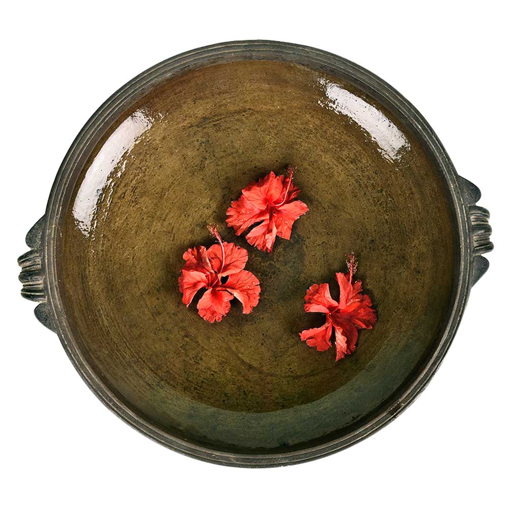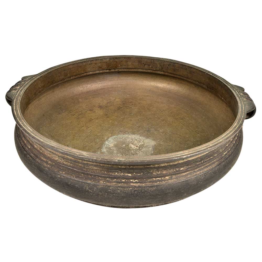 South Indian Bronze Urli Made by Lost Wax Process. One of Its Kind. It Was Used Before in India to Cook Food to Serve Gods and Deities. Now It is Ideal to Put Flowers and Floating Candles and Use It as a Perfect Indoor Decoration. The Beauty of This Piece Lies in the Way of Making This Piece. This Urli is Made by Lost Wax Process. Which is Completely Done by Hand. It Serves as a Beautiful Bronze Bird Bath Too.