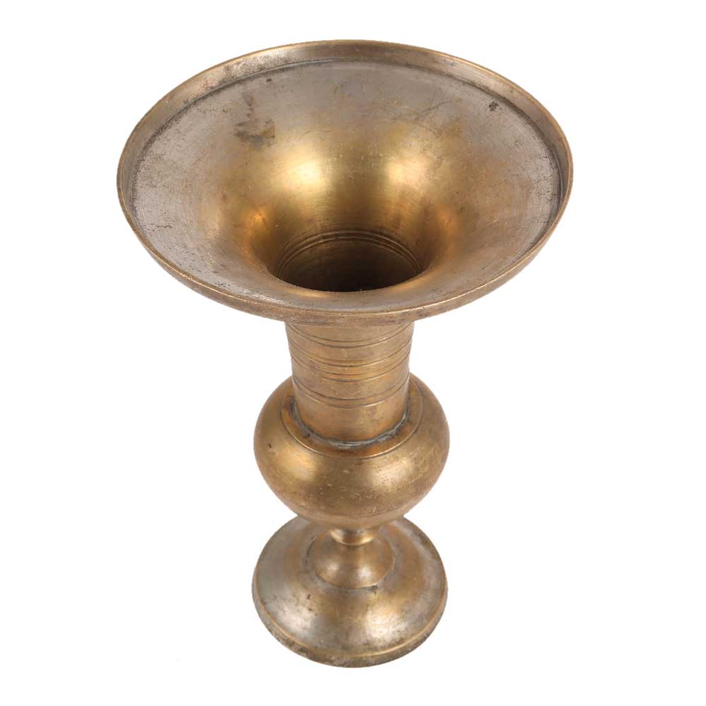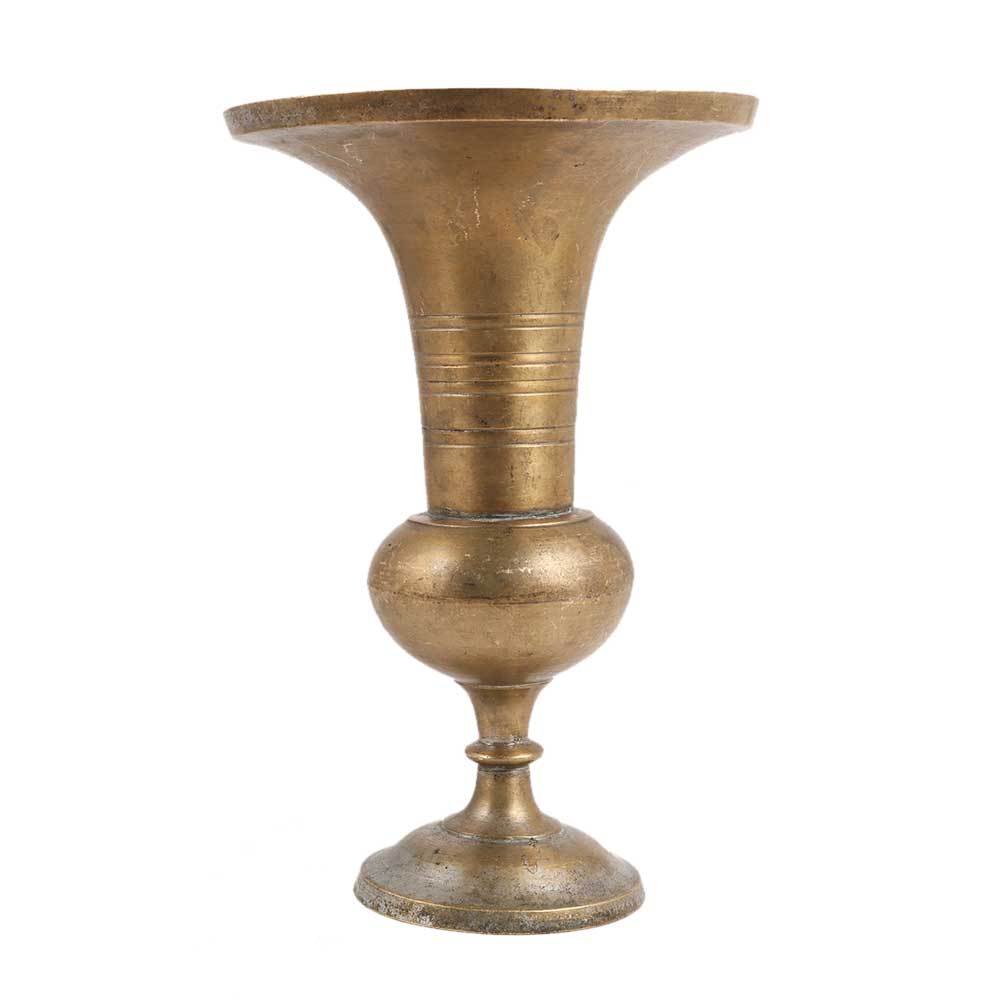 This is a lovely vintage handcrafted brass vessel or flower vase with flared opening and pedestal base. A treat to see, this will be a beautiful addition to your home décor or garden. You can gift this handmade brass vase to your family and friends. It can also be a perfect corporate gift.
