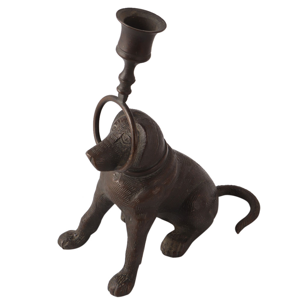 An elegant black dog candle holder for your home, restaurant, hotel or business to add a touch of glamour to your interior design. This dog candle holder is carved from high quality brass to make it reliable. In this English art statue, a dog holds a candle holder in its mouth. Place this exquisite piece on your table or shelf to beautify your home decor. Add this glamorous collectible to your vintage collection. Gift this vintage dog candle holder to your friend, family or relatives to make their day.