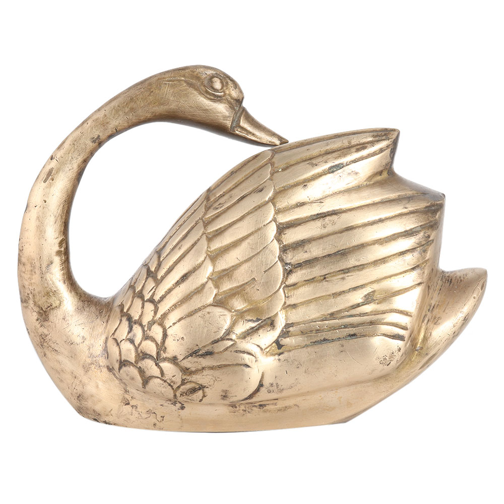 An attractive swan statue is a perfect example of English art. It has a smooth, gold-coloured surface and a flat bottom to hold on the surface. It is believed that a swan statue spreads positive energy in the house. It can be placed in the living room or bedroom to improve coordination between you and your partner. It is also believed that placing a swan statue will maintain peace and attract good luck. Decorate your home or display it in your vintage collection. An ideal gift for special occasions.