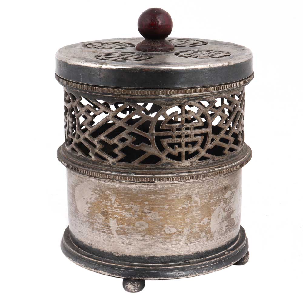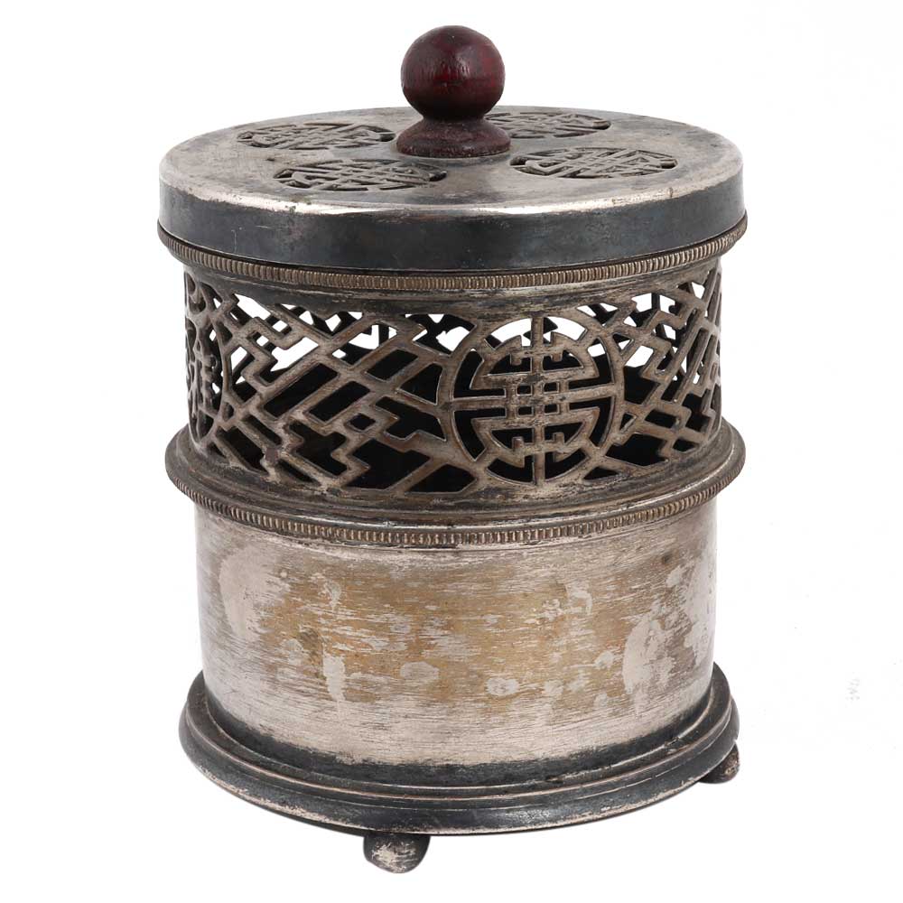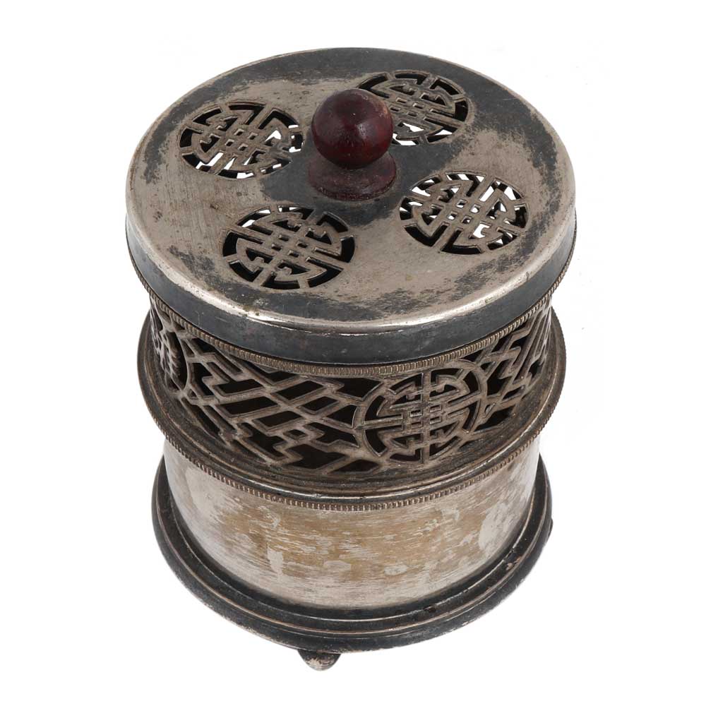 Brass Vintage incense holder from shanghai which has a jali cut design in cylindrical shape . It comes with a lid with a round knob finial. Wedding decoration, Candle Decoration, Diwali Decoration, souvenir, gift for your near and dear ones.