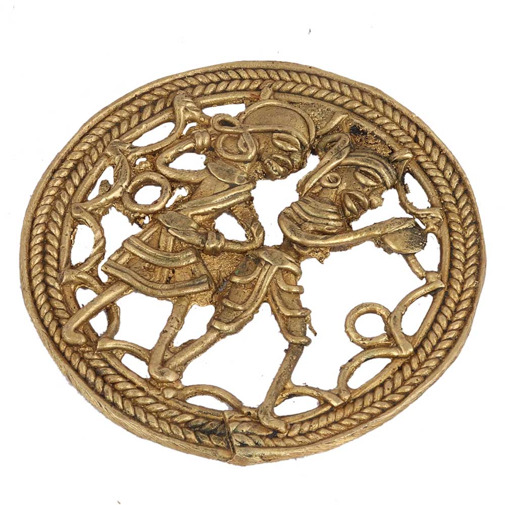 Brass Wall Art Tribal Couple Daily Activity In Round Frame using the idea of daily activities here it depicts a dancing couple . You can frame it and mount it on a wall , Corridor ,Place it on your study table. Diwali gift, anniversary gift, house warming gift , souvenir and showpiece.