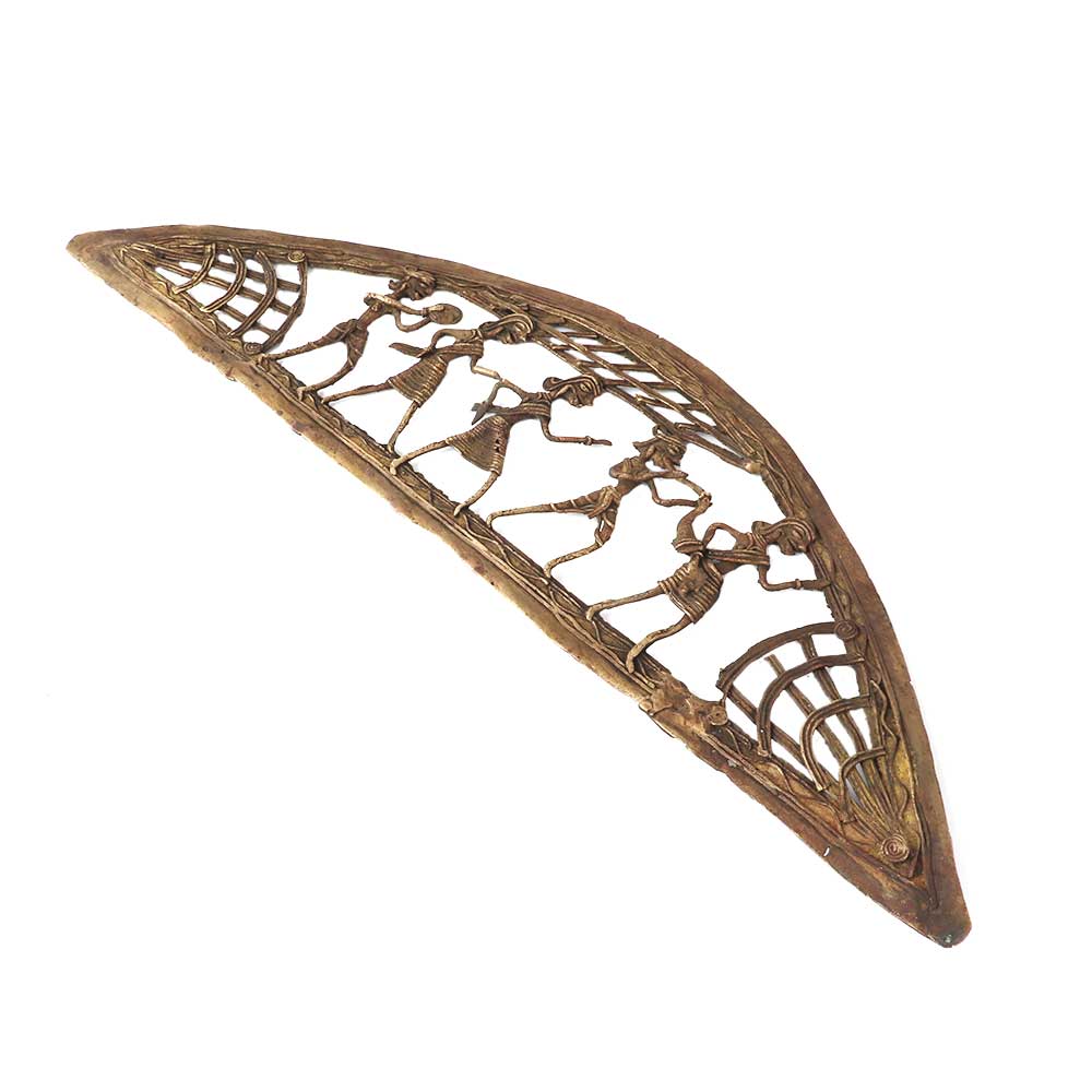 This dokra wall hanging from a brass jatra party features an inverted boat frame and adds color and ethnicity to your decor. It would make a wonderful gift for a festival, housewarming, or corporate occasion, and your loved ones would adore it. Dokra wall hanging gives your decor more color and ethnicity. Whether it's for a holiday, housewarming, or corporate gift, your friends and family will adore this idea.
