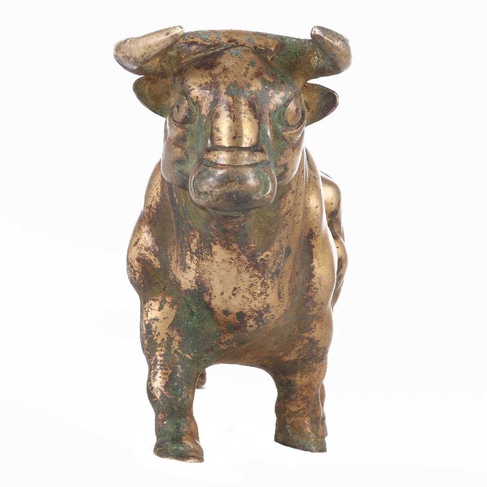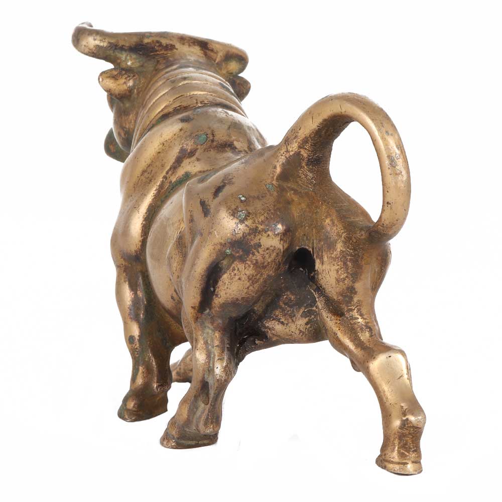 Bulls are known for their physical prowess, with stronger bones, bigger feet, a muscular neck, and a massive, bony skull with protecting wrinkles over the eyes. This realistic Bull is prepared to attack with its fierce horns in this pose. This brass Bull will add a splash of colour to any mantelpiece. Its allure is enhanced by the distinctive royal golden colour.