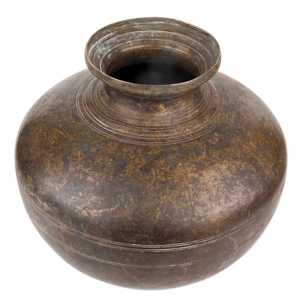 Handmade brass water pot with patina with a small mouth and big bulging body . Use it yourself or use it for flower decoration ,as a planter, store holy water and kept in temples or other places of worship. Gift it to your near and dear