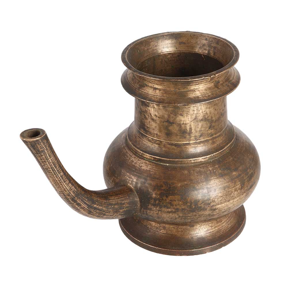 Buy a brass water pot online with a long spout that is not only a functional item used in temples for blessing devotees with water, but it is also a great item to decorate and collect for vintage enthusiasts. It is made of high-quality brass in South Indian art and is durable and beautifully designed. The long spout allows for precise pouring of water, while the vintage style appearance makes it a beautiful decorative item. Its vintage charm adds to its appeal, making it a valuable collectible item for those who appreciate traditional art forms. Whether used for religious or decorative purposes, this brass water pot with a long spout is a timeless piece that adds beauty and sophistication to any collection or setting. Gift it to your near and dear ones on special or festive occasion.