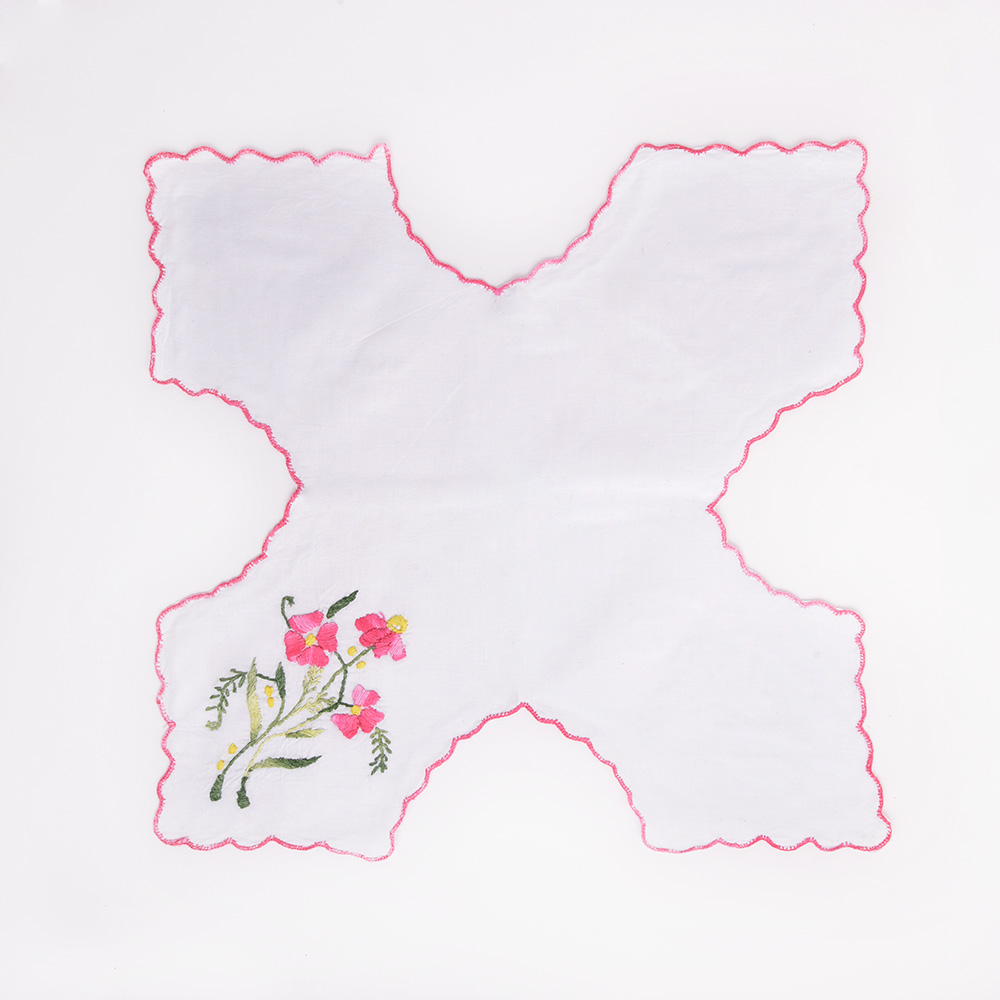 - White Base With Multicolor Embroidery.