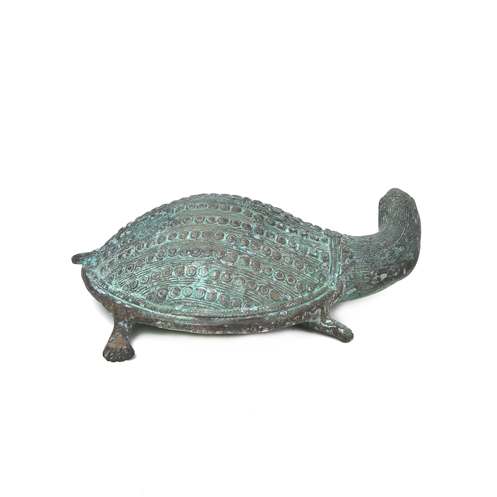 Bronze Alloy Metal Turtle Figurine with Green Patina.