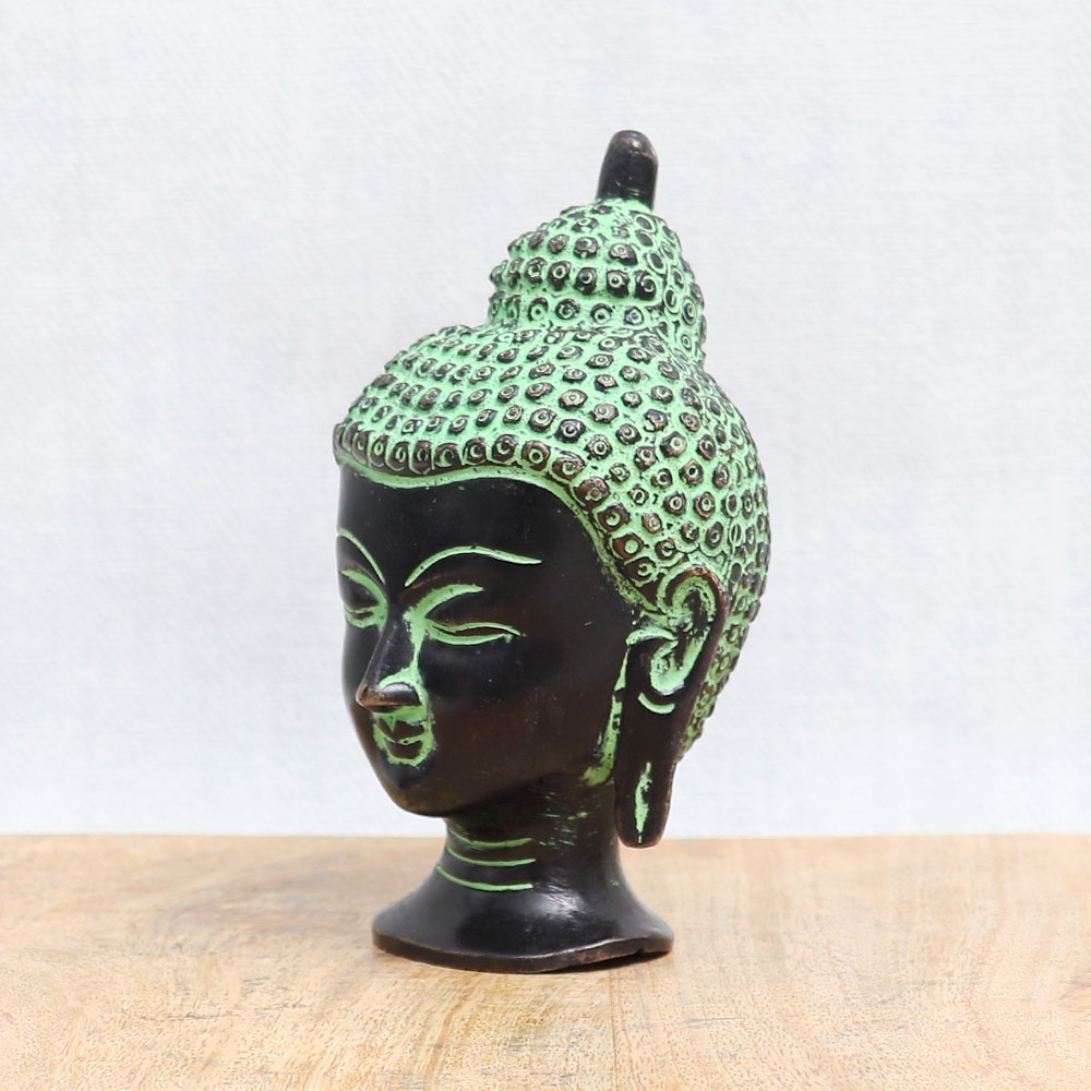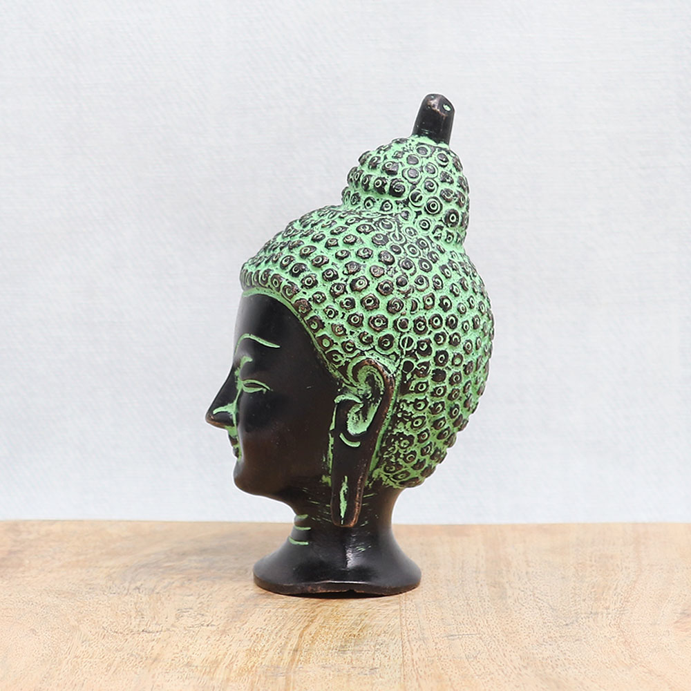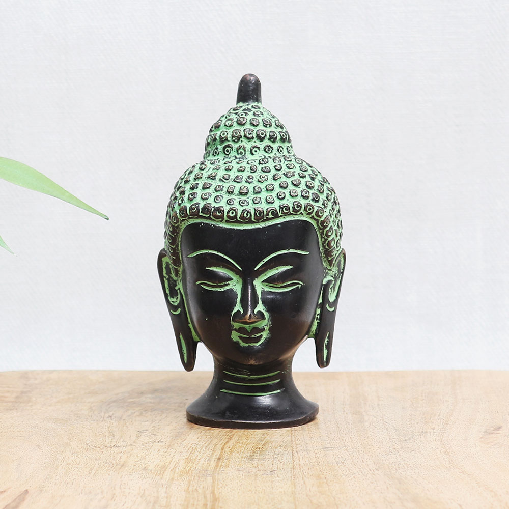 Buy a bronze Buddha head statue online which is an epitome of timeless beauty and spirituality. Crafted with utmost care and devotion, this handmade masterpiece showcases the skill and artistry of talented craftsmen. Adorned with an antique black and green finish, this captivating statue radiates a sense of tranquillity and serenity. The bronze Buddha head statue holds great significance in various Buddhist temples, symbolizing wisdom, enlightenment, and inner peace. Its presence adds a touch of grace and elegance to any interior setting, making it a perfect choice for decorating your home, office, cafe, restaurant, gym, or hotel temple. You can now easily acquire this remarkable piece by purchasing the bronze Buddha head statue online. Whether you seek a divine addition to your personal worship space or a meaningful gift for your near and dear ones on special occasions, festive celebrations, or auspicious events, this statue is an auspicious choice.