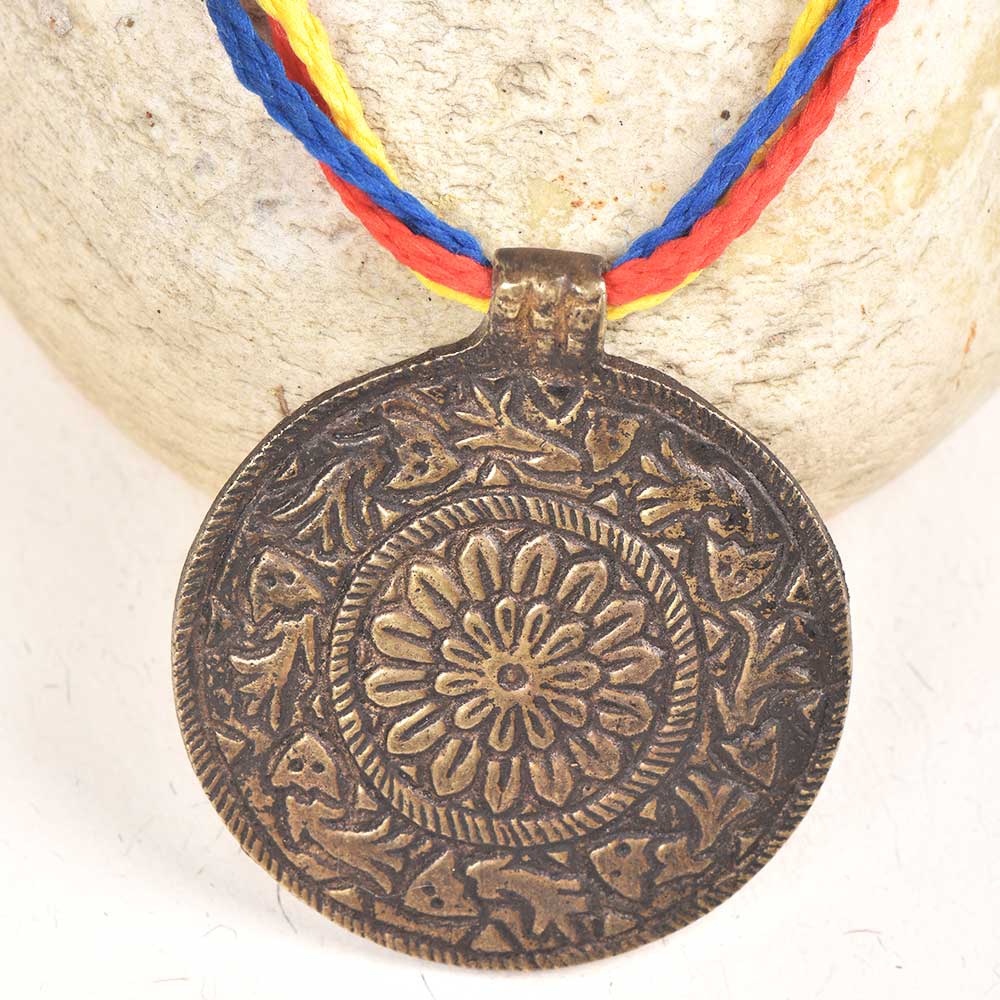 Embrace the beauty of handcrafted tradition with this Bronze Circle Pendant featuring an Etched Flower Design, a stunning fusion of artistry and symbolism. Made from solid brass and finished in warm bronze tones, this pendant showcases a delicately etched floral motif that symbolizes growth, harmony, and renewal. Its round form represents wholeness and balance, while the multicolor patina adds an earthy, artistic depth — making it a perfect accent for those who appreciate cultural and nature-inspired jewelry.