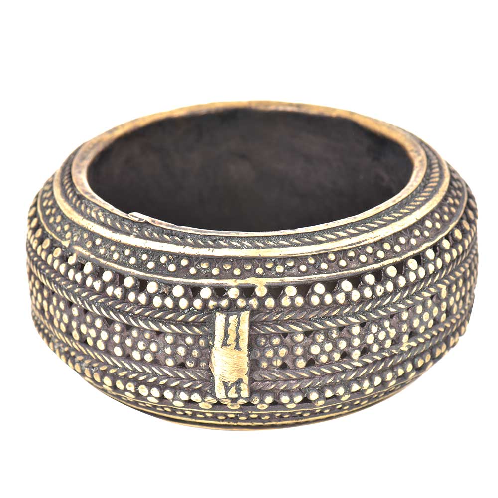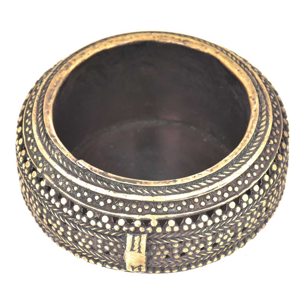 Circular ashtray which makes it more attracting and beautiful. This ashtray is made of bronze and is handmade by the skilled craftsmen of India. It can be used for gifting, decoration or for ash.