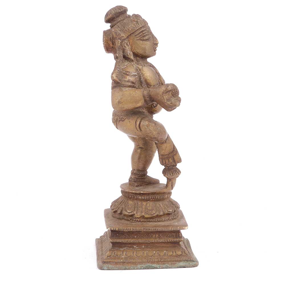 The Dancing Lady is on a Raised Platform and She is Beautifully Ornamented with Fine Engravings. This Figurine is Made of Bronze by the Skilled Craftsmen of India.