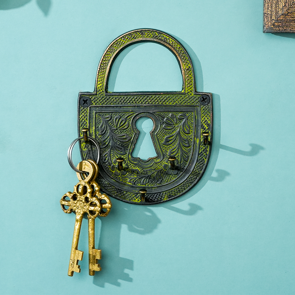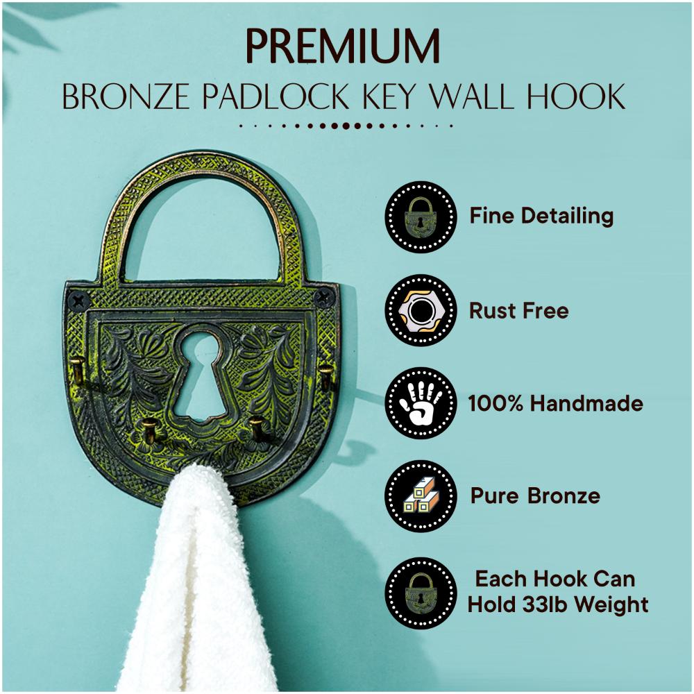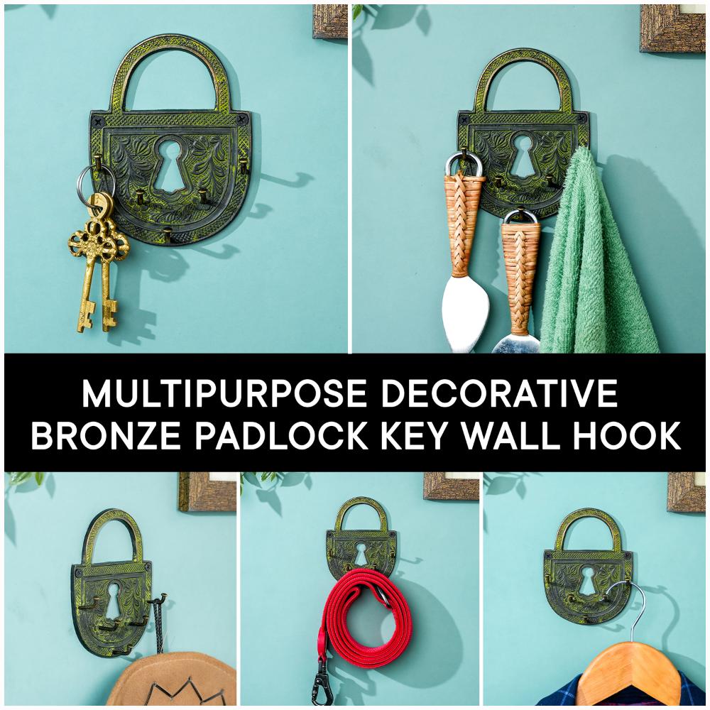 Bronze Decor Hook Padlock Key Hook with Patina.