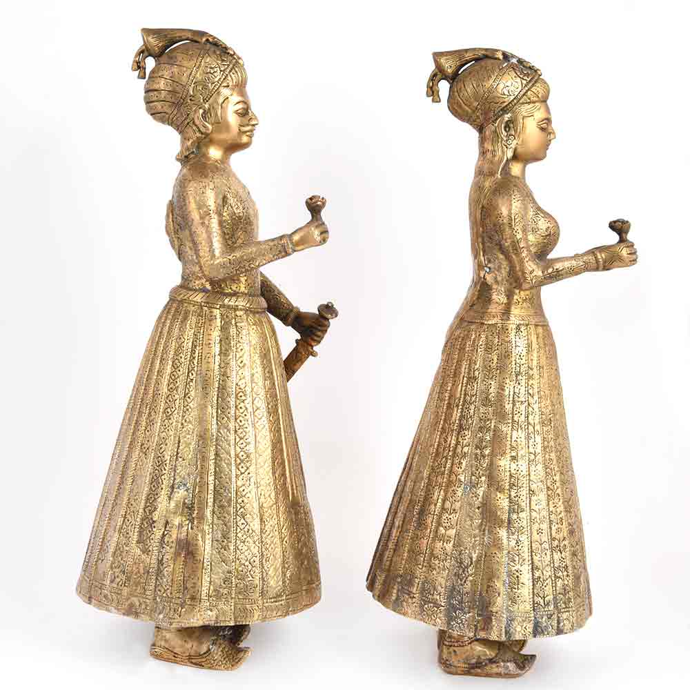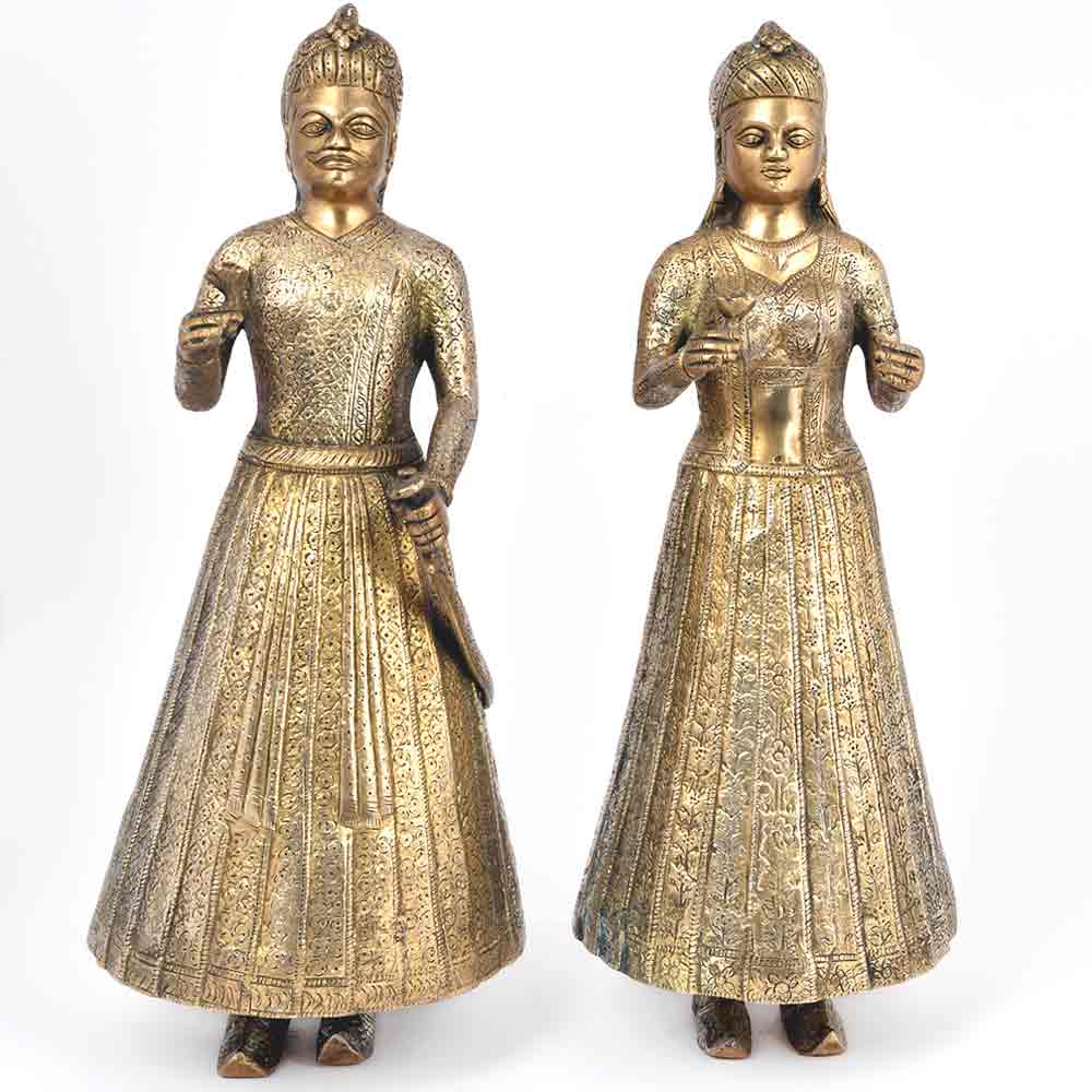 Lost Wax Bronze Statue of Mughal Emperor Shahjahan &Amp; Empress Mumtaj Mahal. Finely Done to Get That Peaceful Expression on the Face. Brings Instant Peace At a Moment Glance. Fills the Atmosphere with Peace and Positive Energy. Handmade. It is More Than a Statement Piece.