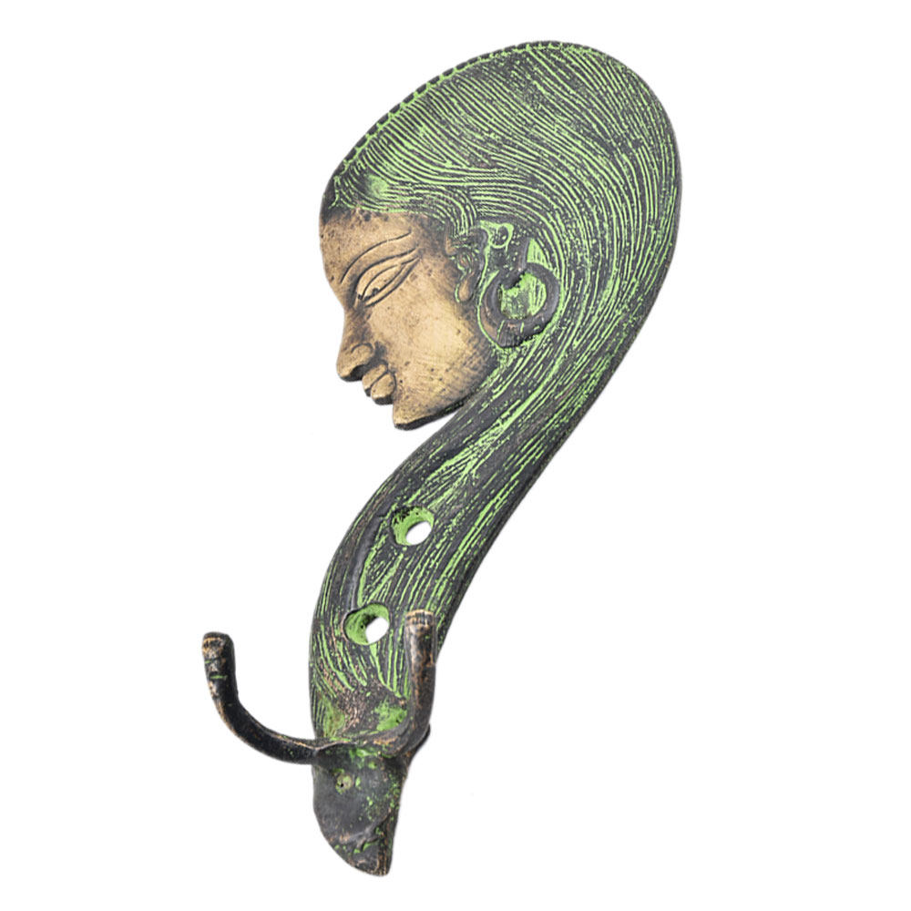 Bronze Women Face with Long Hair Hook. When Put on Wall or Cabinet It is An Art in Itself. Its A Mix of French and English Design. Suitable for Your Kitchen, Cupboard, Rooms, Cabinets, Almirahs, Bathrooms, Doors, Etc.