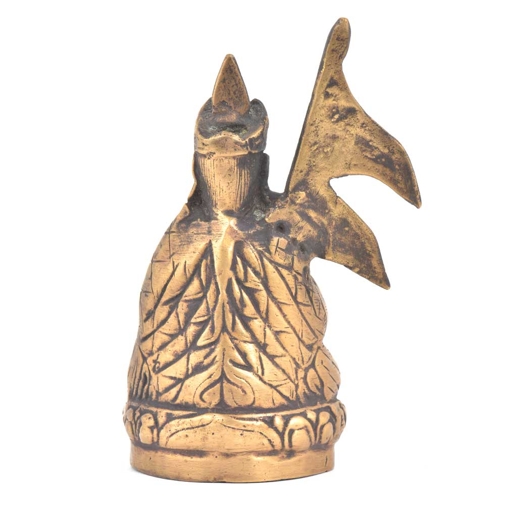 Nepalese holding the flag of nepal is seated on a raised platform and is made of bronze by the skilled craftsmen of India. This bronze figurine has very fine detailings done very beautifully and is handmade. It can be used for gifting and decoration.