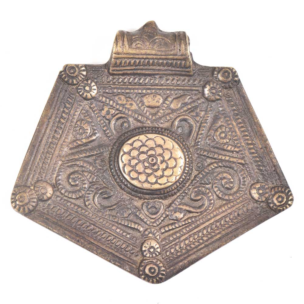 Express your individuality with this Handcrafted Bronze Pendant in a striking pentagon shape, artfully designed from brass and adorned with multicolor detailing. The geometric form symbolizes balance and strength, while the hand-finished surface reflects rich artisan craftsmanship. Polished to perfection, this pendant blends the classic allure of brass with vibrant artistic accents — a statement piece that adds cultural flair to modern jewelry collections.