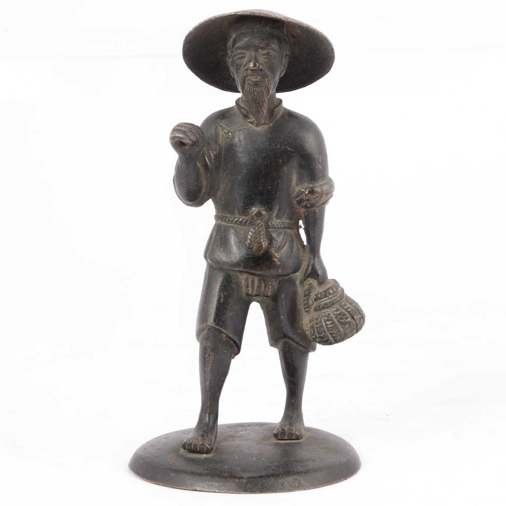 Bronze Sculpture Fisherman Paperweight Antique Home Decoration Antique Bronze Crafts Feng Shui Decoration.