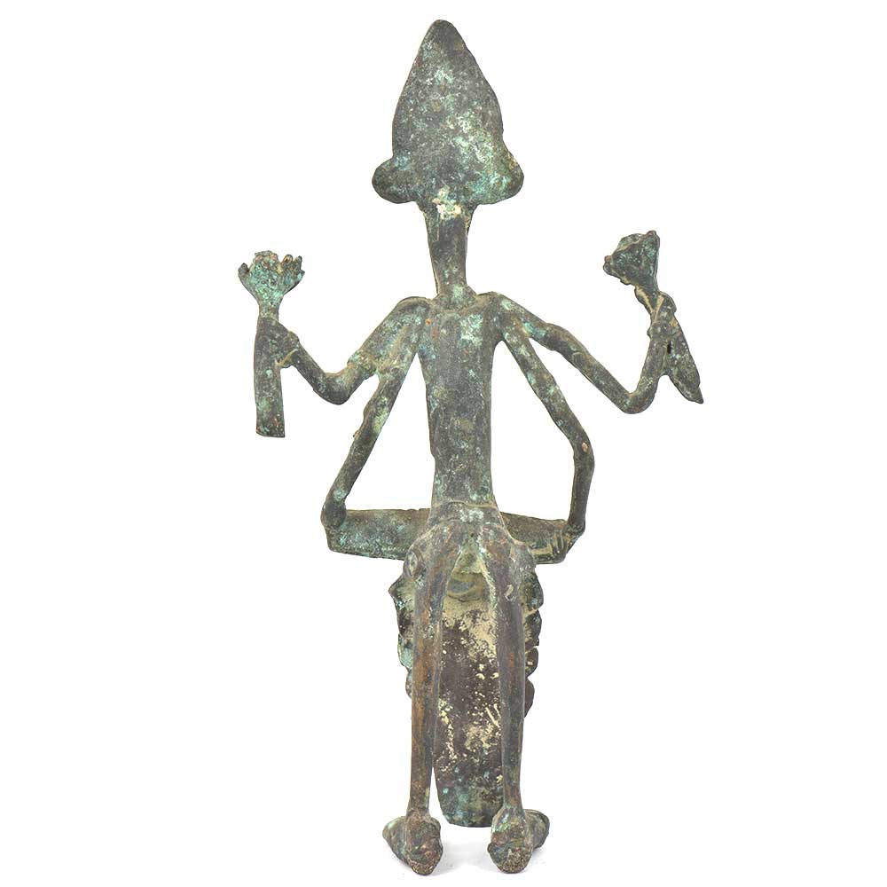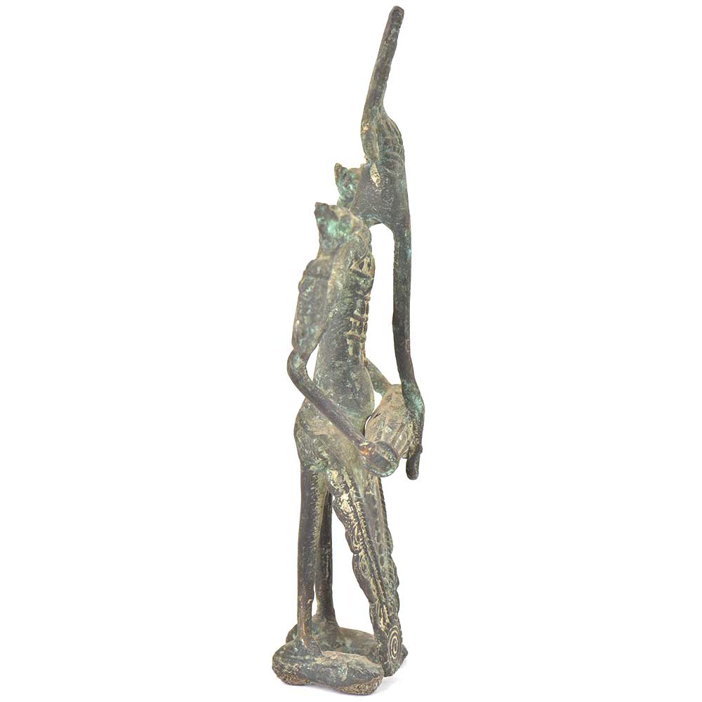 Tribal ganesha playing dholak figurine is made of bronze and is handmade by the local or tribal craftsmen of India. In this bronze figurine ganesha can be seen as playing dholak. This beautiful statement piece can be used for gifting, worshipping or decoration and it has a vintage finishing which makes it attracting.
