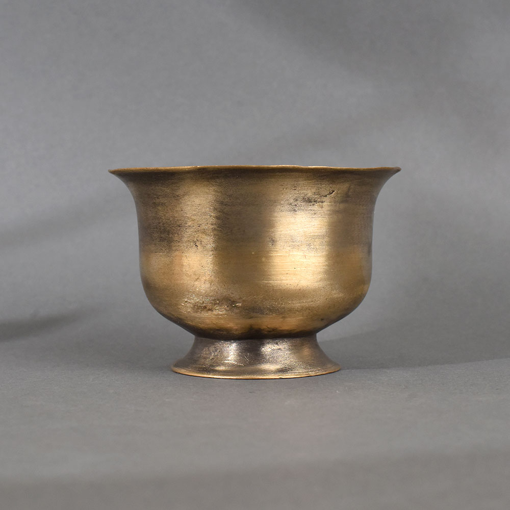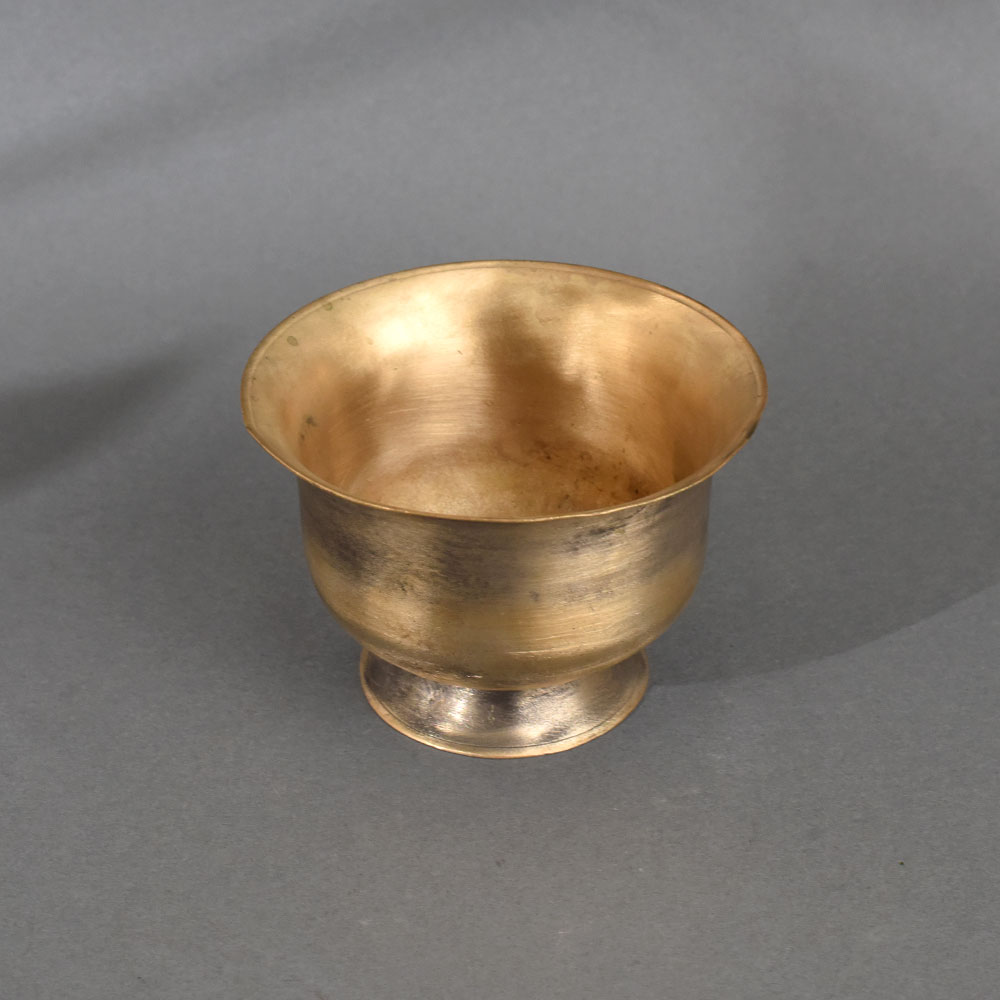 This traditional brass Kumkum pot is a beautifully handcrafted vessel used in Hindu religious practices for holding kumkum (vermilion powder), haldi (turmeric), or other sacred offerings. Made from solid brass, it features a rounded body with a gently flared rim and a raised footed base, providing both visual balance and practical stability. The pot’s smooth surface and warm golden patina reflect years of devotional use and lend it an authentic antique charm. Kumkum pots like this are essential in daily puja rituals and auspicious ceremonies, symbolizing purity, honor, and spiritual connection. Placed on home altars or in temples, they are used to offer and apply sacred powders during prayers, blessings, and traditional Indian festivals. Brass, a revered material in Hindu culture, is believed to have purifying properties and the ability to attract positive energy.