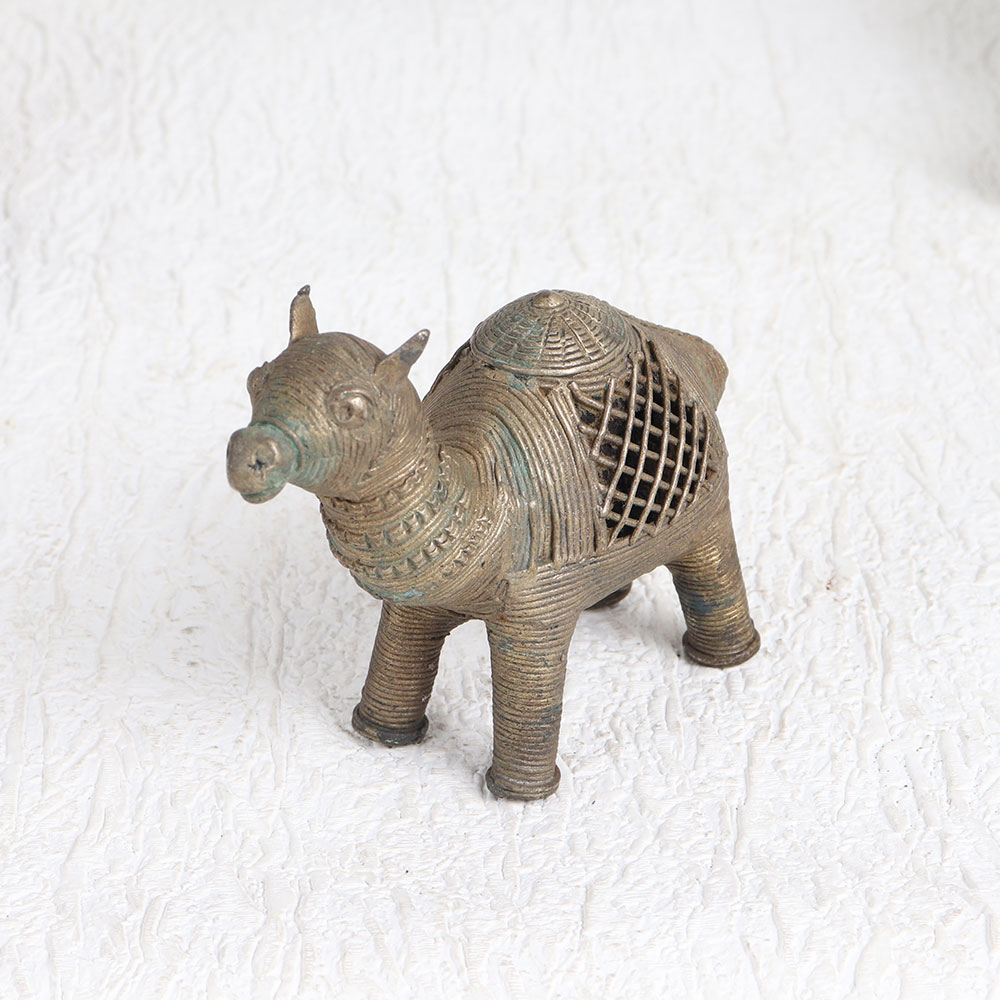 Buy a Brass Camel Statue online that is adorned with intricate Jali work and finished in a rich antique brown hue. Handmade by talented Indian artisans, this exquisite piece showcases their exceptional craftsmanship and attention to detail. Crafted from high-quality brass, this camel statue embodies both artistry and durability, ensuring it stands the test of time. Its versatile design seamlessly complements a variety of settings, making it a perfect addition to your home, office, restaurant, hotel, cafe, or shop. Whether you're a collector of vintage treasures or an art enthusiast looking for a distinctive exhibit piece, this camel statue will effortlessly enhance your space. Its antique brown finish lends a touch of nostalgia and authenticity to any environment. This stunning brass camel statue also makes for a thoughtful gift on special, festive, or auspicious occasions, allowing you to share the beauty of Indian craftsmanship with your family, friends or relatives.