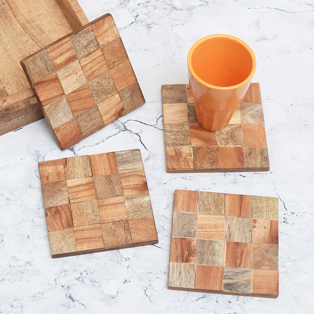 Crafted from sturdy wood, these coasters are durable enough to withstand daily wear and tear. They are designed to protect your furniture without compromising on style, providing long-lasting reliability.