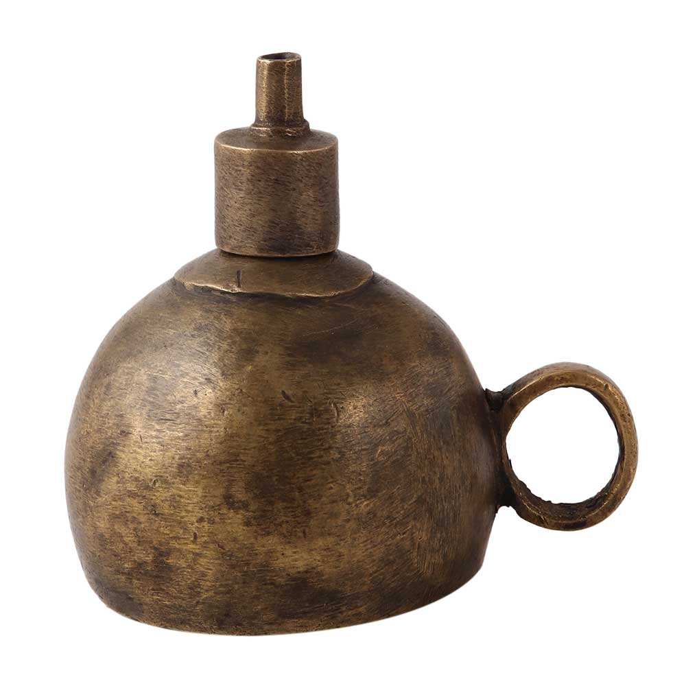 A brown coated kerosene lamp to decorate your living room. Place it on your study desk, table or shelf to add charm to your interior. This kerosene lamp is made of the best brass by skilled workers with their hands. This brass lamp with antique finish will enhance the interior of your home, office or restaurant. This artefact has been used for centuries for decoration and will give your interior a vintage look. Its unconventional design sets it apart from other vintage items. A housewarming gift, anniversary or Thanksgiving for your loved ones.