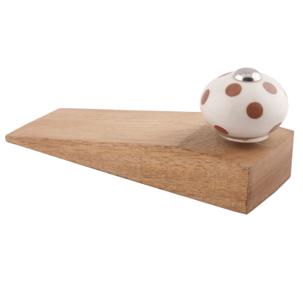 Handmade Ceramic and Wooden Door Stopper.Wooden Door Stopper with a Ceramic Knob to Carry it Easily. This Wooden Door Stopper has Glue Dots under it to Ensure that it does not Slip. It is Handmade by the Craftsmen of India and this Innovative Door Stopper won't Disappoint You.