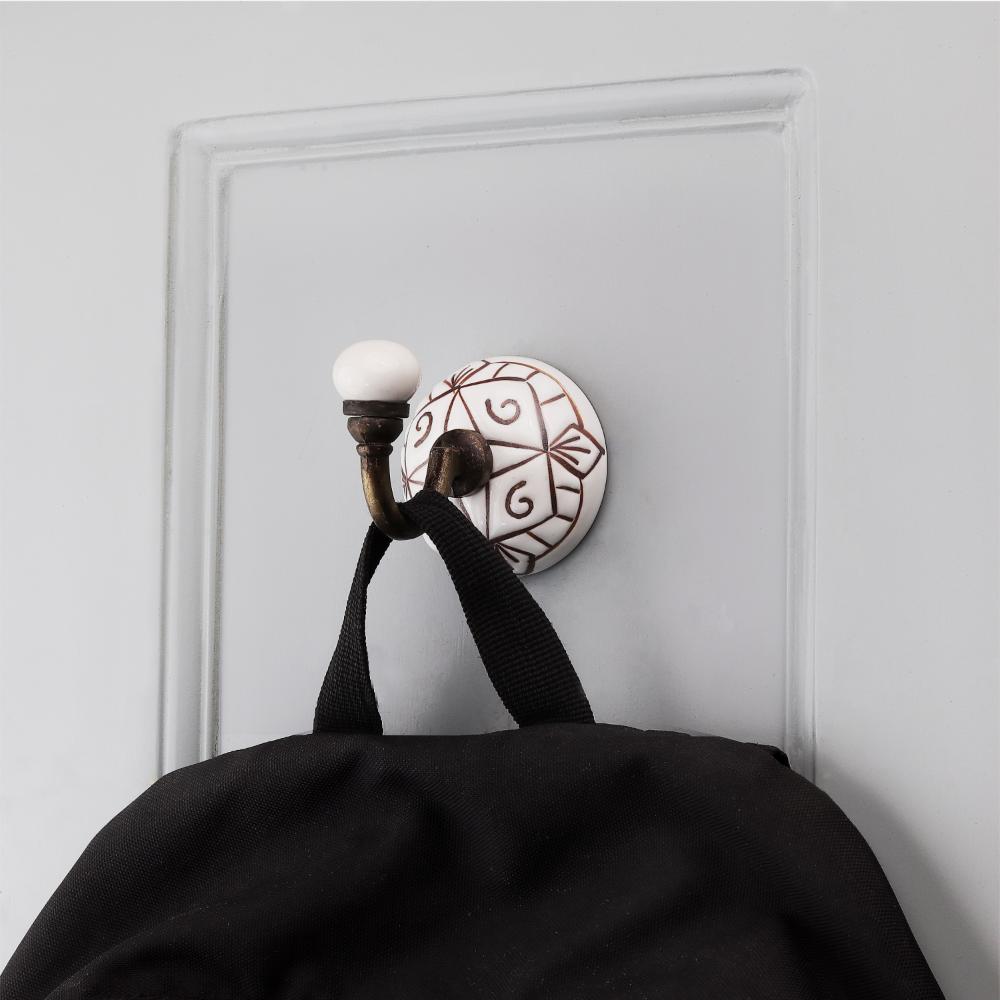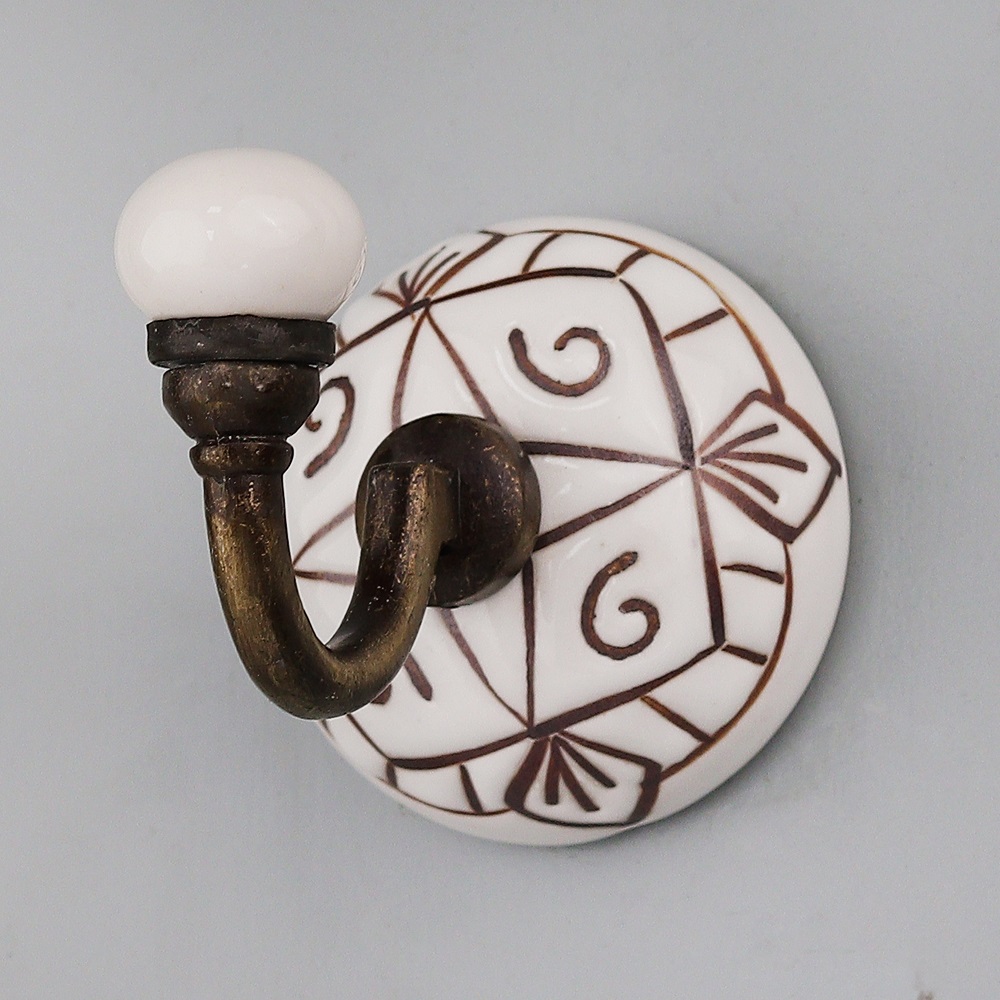 Brown Etched Ceramic Wall Hook. When Put on Wall or Cabinet It is An Art in Itself. This Hook is Strong Enough to Hold Your Cloths, Keys, Tea Cups, Coffee Mugs, Hand Towels etc.