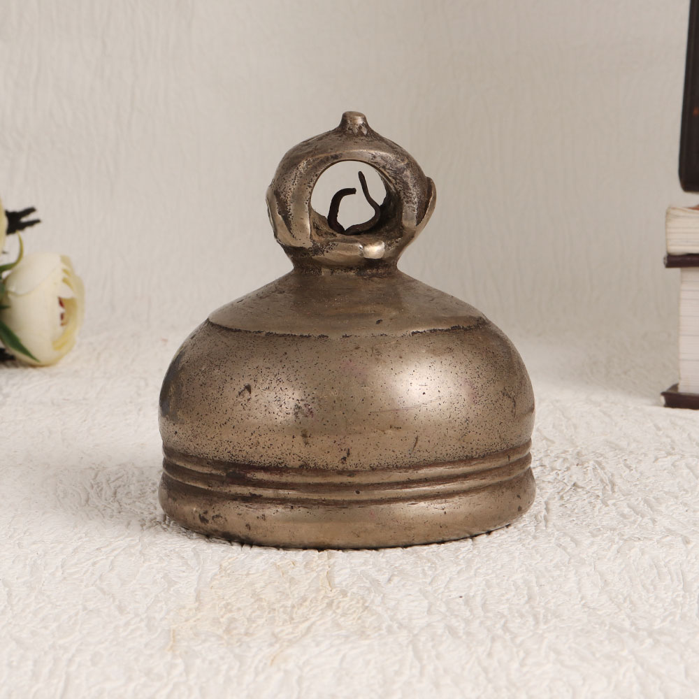 Evoke an aura of timeless charm and cultural richness with this exquisite Vintage Bell Metal Bell. Crafted by skilled Indian craftsmen hailing from the region of Himachal, this bell exudes elegance and craftsmanship that has been honed through generations. Made from high-quality brass, the bell showcases an enchanting antique brown finish, which adds a touch of nostalgia to any space it graces. Its intricate design and craftsmanship reflect the true essence of Indian artistry. This bell comes complete with a hanging loop, making it easy to adorn your home, office, restaurant, hotel, cafe, or shop. Its versatile appeal allows you to place it in your prayer room for worship and decoration, infusing spiritual significance into your surroundings. It also makes a perfect addition to any vintage collection, enhancing its uniqueness and allure. Furthermore, this bell serves as a thoughtful and meaningful gift for your family, friends or relatives on special, festive, or auspicious occasions.